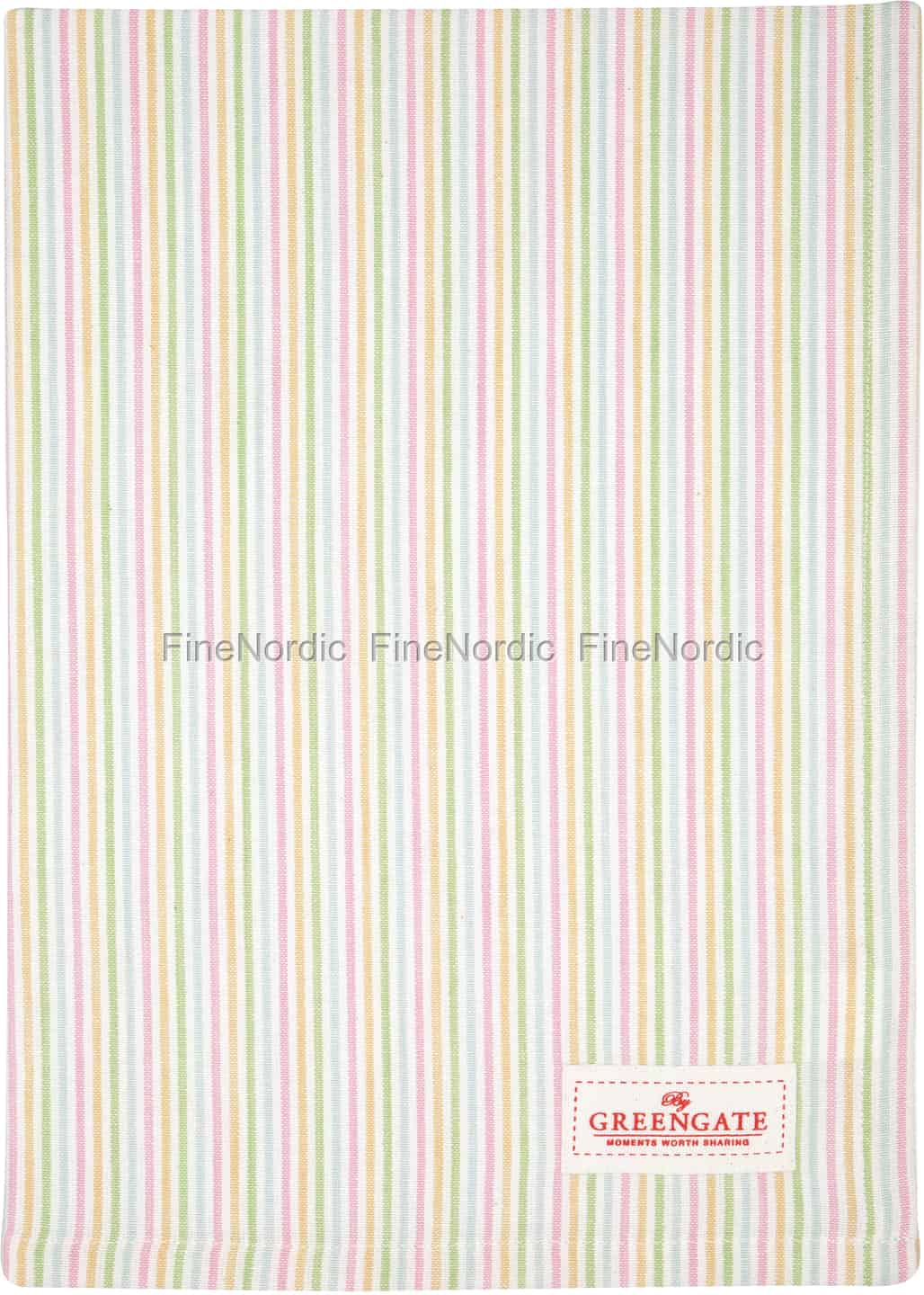 Hübsche, pastellfarbene Streifen schmücken das Ansley White Geschirrtuch von GreenGate. Das Baumwollgeschirrtuch verleiht Ihrer Küche ein Hauch von Farbe und Stil. Sie können dieses Küchentuch zum Geschirr abtrocknen, zum Abdecken und Warmhalten von Speisen und sogar als improvisierten Topflappen verwenden. Die Geschirrtücher von GreenGate sind schöne Einweihungsgeschenke für einen neuen Nachbarn oder einen lieben Freund. Sie können dieses Baumwolltuch auch als nachhaltige Geschenkverpackung für ein kleines Geschenk oder eine Überraschung verwenden.