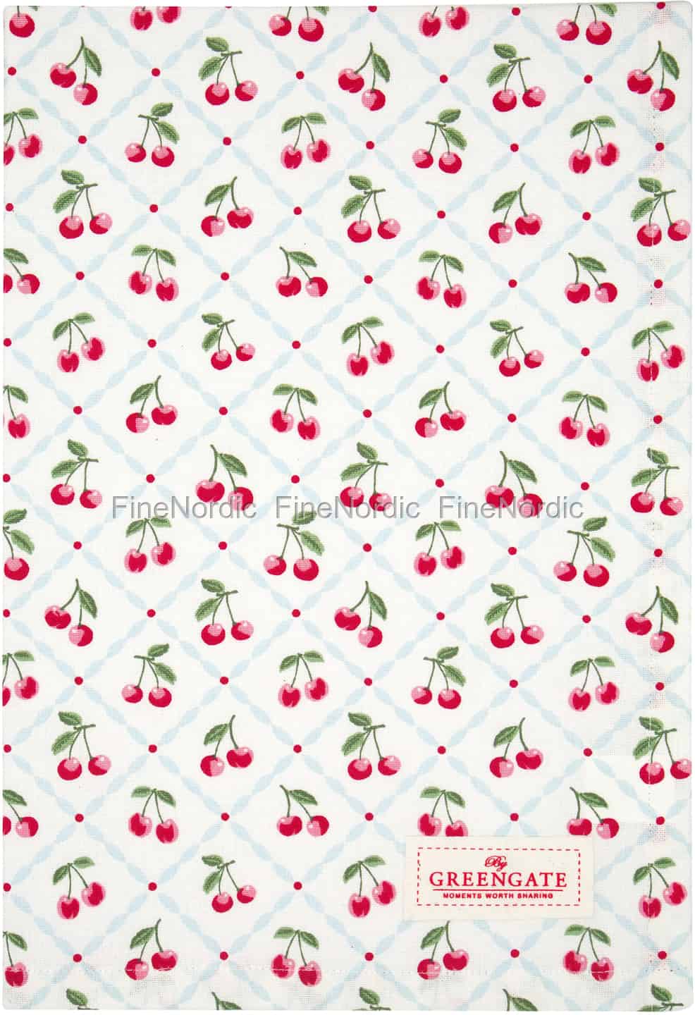 Verwandeln Sie lästige Küchenarbeiten zur lustigen Freizeitbeschäftigung mit diesem fröhlichen GreenGate Geschirrtuch. Das Cherie White Geschirrtuch ist mit Kirschen, hellblauen Linien und roten Punkten verziert und dazu auch mit dem markanten GreenGate Label versehen. Das Baumwolltuch hilft Ihnen beim Trocknen des Geschirrs sowie auch beim Abdecken und Warmhalten von heißen Speisen. Wenn es mal gerade nicht im Einsatz ist, dann dient es als dekoratives Element in der Küche, während es von einem Küchenhaken oder -griff baumelt. Wenn Sie das hübsche Cherie White Muster genauso sehr mögen wie wir, dann sollten Sie sich vielleicht mal alle Produkte ansehen, die wir mit demselben gut aussehenden Design anzubieten haben. Sie finden dieses nämlich nicht nur auf Porzellan, sondern auch auf verschiedenen Textilien, Melaminprodukten sowie Taschen und sogar auf Fahrradteilen. Sie können nicht glauben, was Sie da lesen? Na, dann schauen Sie doch mal um in unserem Webshop und sehen Sie es für sich selbst.