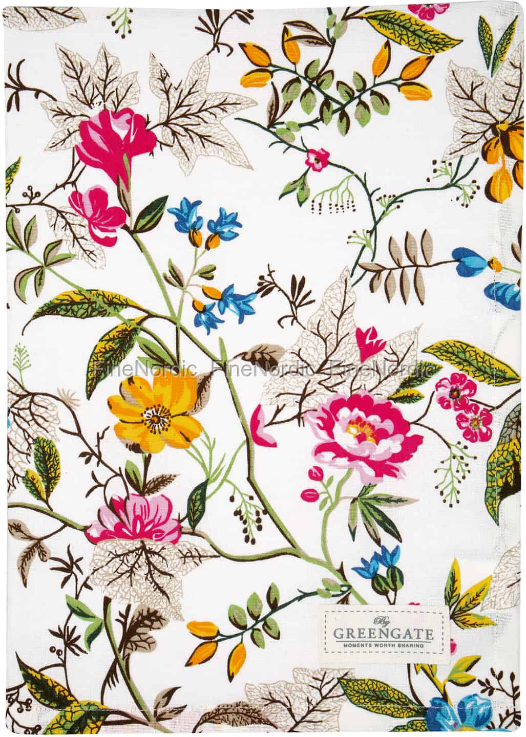 Das farbenfrohe Ellen White Geschirrtuchmuster ist sehr hübsch anzusehen und aufgrund der kräftigen Farben ist es auch sehr schwer, das Geschirrtuch in der Küche vielleicht mal zu übersehen. Das Design des Geschirrtuchs besteht aus verschiedenen Blüten und Blättern, worunter die gelben ganz besonders auffallen. Das Baumwollküchentuch ist ein wunderbares Küchenaccessoire, das Sie bei vielen verschiedenen Küchenarbeiten unterstützen kann. Außer Geschirr abtrocken kann es nämlich auch über Essen gelegt werden, um dieses warm zu halten, oder über eine Schüssel mit Hefeteig drapiert werden, damit dieser geschützt aufgehen kann. Das waren jetzt nur ein paar wenige Beispiele, das multitalentierte Geschirrtuch hat noch viele andere Talente. Das hübsche Ellen White Muster befindet sich auch auf der Ellen White Tischdecke sowie auf anderen Textilien und auch auf Porzellanartikeln. Sie finden diese alle in unserem Webshop.