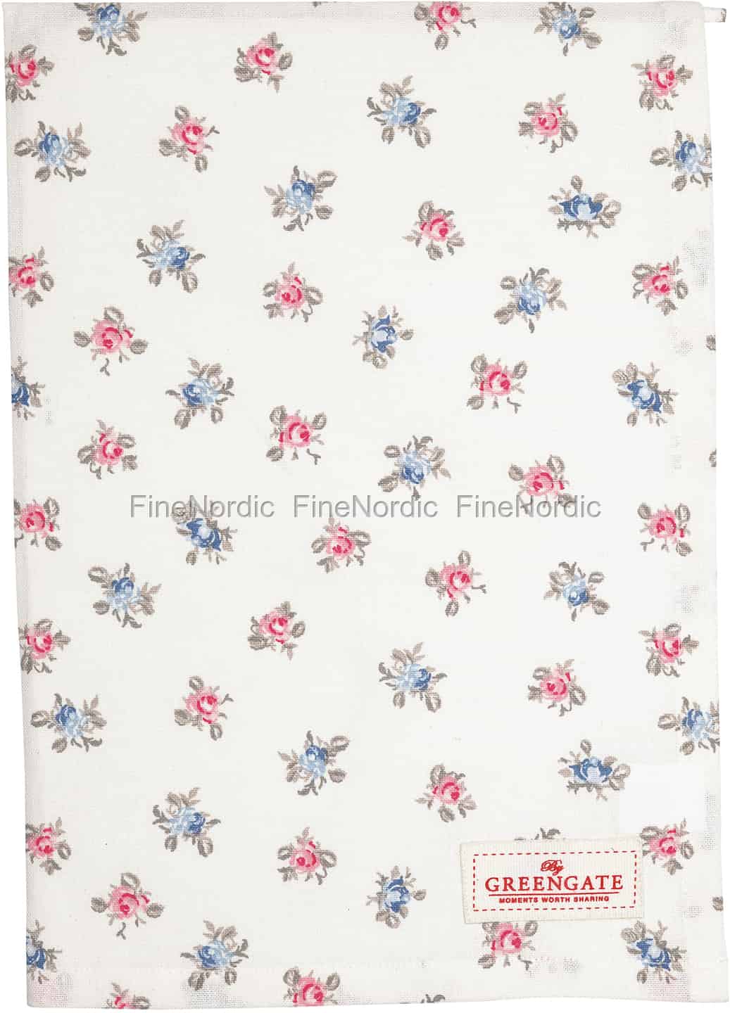 Kann man wirklich zu viele Geschirrtücher besitzen? Wir glauben das nicht. Geschirrtücher helfen Ihnen beim Geschirrabtrocknen und sind dazu auch eine schöne Dekoration. Sie können damit einen Brotkorb auslegen oder zum Zusammenbündeln von Frischgebackenem verwendet werden. Werfen Sie doch mal einen Blick auf dieses schöne Geschirrtuch. Zierliche rote und blaue kleine Rosen zieren den hellen Hintergrund dieses Hailey Petit White Geschirrtuchs von GreenGate. Das Firmenlogo von GreenGate ist ebenfalls aufgenäht, so dass es keinen Zweifel daran gibt, welches Unternehmen es entworfen hat. Das hochwertige Geschirrtuch besteht aus 100% Baumwolle. Gefällt Ihnen dieses Blumenmuster? Dann schauen Sie sich doch bitte auch die anderen Hailey White Produkte an, die wir in unserem Webshop anbieten.