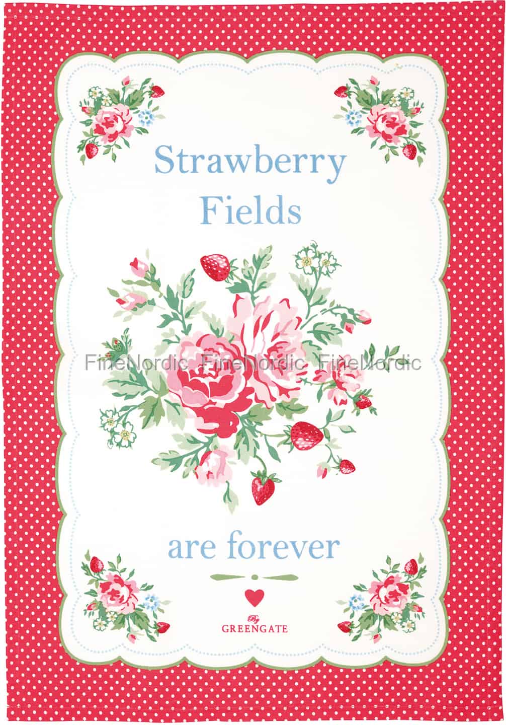 Das GreenGate Geschirrtuch Mary White Piece Printed ist genauso gutaussehend wie es auch praktisch ist. Es ist ein hübscher Blickfang in der Küche und trocknet Ihr Geschirr in nur kürzester Zeit. Das 50 cm x 70 cm große Baumwollgeschirrtuch mit seinen weißen Punkten auf rotem Hintergrund und dem schönen Blumen- und Erdbeerprint, ist mit den Worten: „Strawberry Fields are forever“ bedruckt. In unserem Webshop finden Sie nicht nur dieses eine, sondern auch viele andere schöne GreenGate Geschirrtücher.