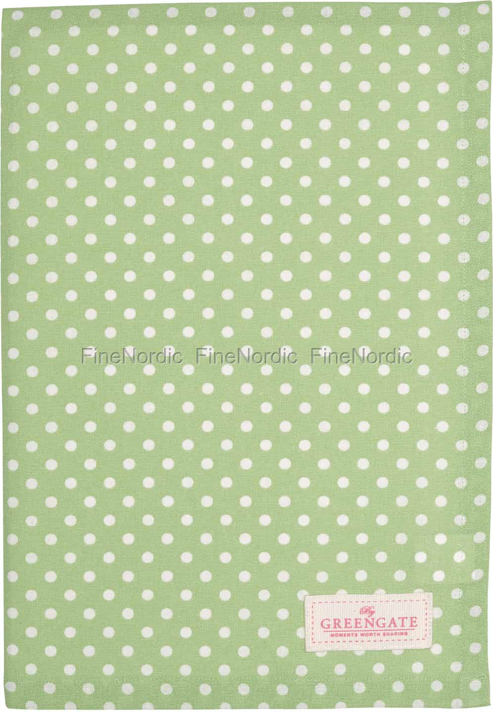 Es ist immer gut, ein Geschirrtuch in der Nähe zu haben! Möchten Sie die Speisen, die Sie gerade aus dem Ofen gezogen haben, zudecken, einen Brotkorb auslegen oder Geschirr abtrocknen? Dann greifen Sie einfach zu diesem Spot Pale Green Geschirrtuch von GreenGate. Es ist nicht nur super praktisch, sondern sieht auch schön aus. Das hellgrüne Geschirrtuch ist mit weißen Punkten überzogen und das GreenGate Label ist auch aufgenäht. Das Geschirrtuch aus 100% Baumwolle ist von ausgezeichneter Qualität und passt zu den anderen Spot Pale Green Produkten von GreenGate. Wenn Ihnen das gepunktete Design gefällt, dann sehen Sie sich doch auch die Artikel aus den Serien Spot Pale Pink und Spot Pale Blue an, die wir in unserem Webshop anbieten.