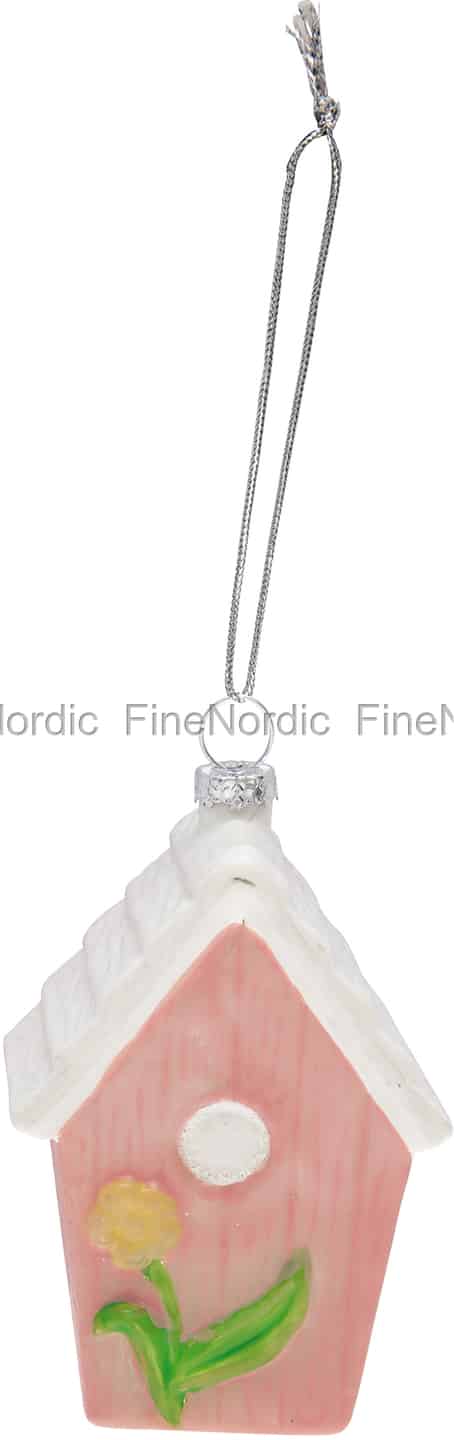 Das pastellrosa Hausornament von GreenGate ist eine hübsche Frühlings- und Osterdekoration. Das Glasornament hängt an einer Schnur, sodass es leicht an blühenden Zweigen oder einem Osterkranz befestigt werden kann. Das pastellrosa Haus hat die Form eines Vogelhauses. Es hat ein weißes Dach und die Vorderseite ist mit einer gelben Blume verziert. Hängen Sie es ganz alleine auf oder in Kombination mit dem pastellgrünen und dem pastellgelben Glashaus von GreenGate, welche Sie auch beide direkt hier in unserem Webshop finden können.