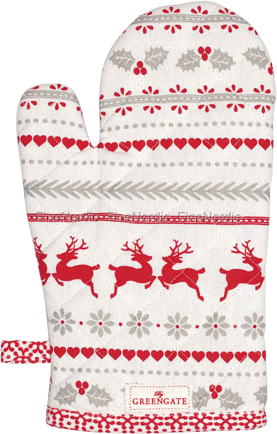 Wer liebt es denn nicht Plätzchen während der Weihnachtszeit zu backen!? Kaufen Sie dsich den nützlichen Grillhandschuh von GreenGate namens Ivy White und Sie werden sich bei Backen nicht mehr Ihre Hände verbrennen. Der Handschuh hat eine perfekte Größe und hat eine schöne Schnur auf der einen Seite, so dass man ihn in Ihrer Küche aufhängen kann. Sein rotes und graues Design, das Herz, Tupfen, Blumen, Rentiere und vieles mehr enthält, sieht sehr festlich aus und macht den Handschuh perfekt, um leckere, hausgemachte Weihnachtsplätzchen aus dem Ofen holen. Genießen Sie das weihnachtliche Backen und Kochen mit diesem Ivy White Grillhandschuh.