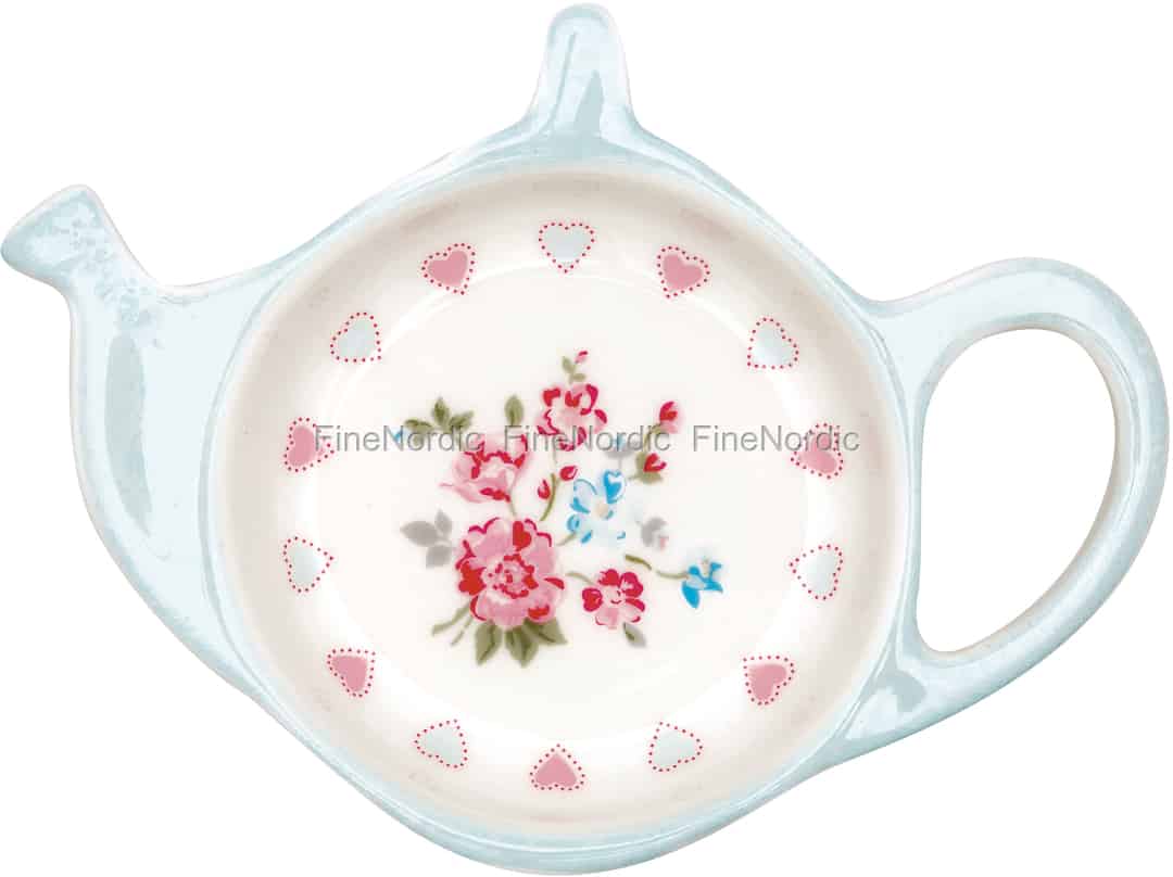 Der entzückende Teebeutelhalter Sonia White von GreenGate ist in Form einer Teekanne gestaltet. Ein Blumen- und Herzmuster ziert die runde Mitte dieses Porzellanhalters für Teebeutel und sein Rand ist einfarbig hellblau. Er ist ein weiteres großartiges Stoneware Accessoire aus der beliebten Sonia White Serie von GreenGate. Wenn Sie ihn mit einer Sonia White Teetasse kombinieren, dann haben Sie gleich ein schönes Geschenk für einen teeliebenden Freund. Die Beutelhalter von GreenGate sehen nicht nur charmant aus, sie bieten auch ein geeignetes Plätzchen, wo der Teebeutel vorübergehend nach dem Ziehen abgelegt werden kann, bis die alltägliche Tea Time vorbei ist.