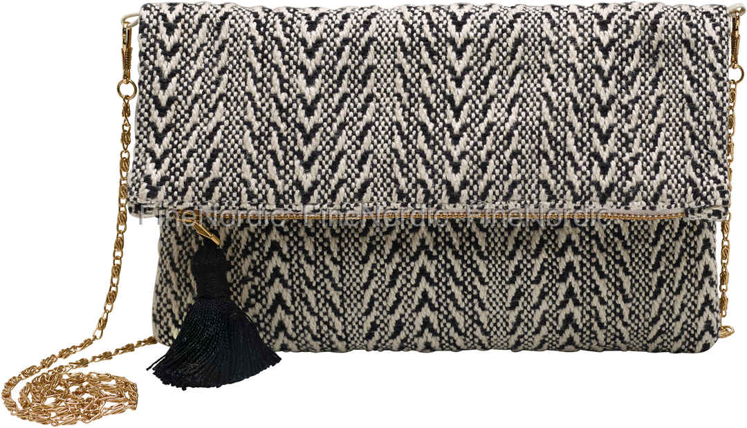 Diese schöne schwarze Handtasche von GreenGate ist perfekt für Ihre nächste Partyacht mit Freunden. Sie hat ein hübsches schwarz-weißes geometrisches Muster, einen praktischen goldfarbenen Kettenriemen und eine schwarze Quaste. Die Tasche ist perfekt geeignet zum Ausgehen, für eine Verabredung oder für einen besonderen Anlass, da ihr Design so elegant ist. Es wird perfekt mit Ihrem Lieblings-kleinen schwarzen Kleid sowie ein bunteres Outfit gehen. Sie können die Tasche am Riemen tragen oder sie als Clutch benutzen. Diese Handtasche hat die perfekte Größe, da alles rein passt was Sie brauchen, sie aber trotzdem nicht zu groß ist.
