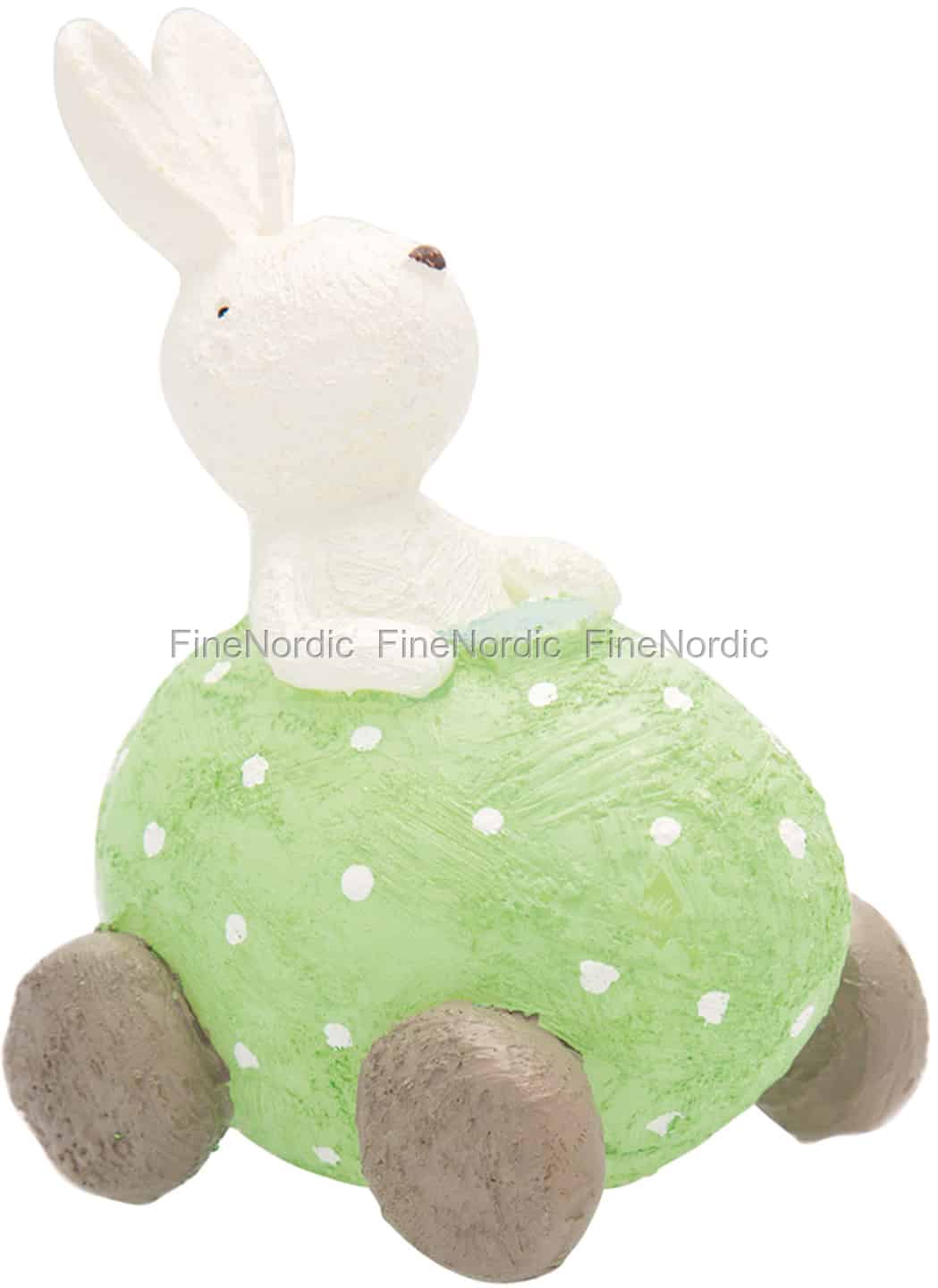 Wenn Sie auf der Suche nach bezaubernden Osterdekorationen sind, dann sind Sie hier an der richtigen Adresse. Diese entzückende Kaninchenkerze von GreenGate besteht aus einem Kaninchen, das in einem eiförmigen Auto sitzt. Das grüne Auto ist mit weißen Punkten verziert und mit vier Rädern versehen. Diese charmante Kerze ist fast zu hübsch zum Anzünden. Wenn Sie sie nur als Dekoration auf den Tisch oder die Fensterbank stellen wollen, dann können Sie sie Jahr für Jahr wieder verwenden. Die Kaninchen mit Auto Kerze von GreenGate ist auch in Rosa und Hellblau erhältlich. Bestellen Sie gleich alle drei und so können Sie sie hintereinander stellen und einen Eierautozug kreieren. Die grüne Kaninchen mit Auto Kerze von GreenGate ist auch ein schönes Gastgeschenk für einen Osterbrunch.