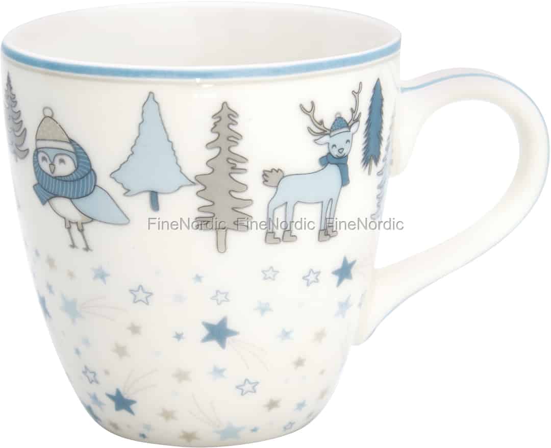 Niedliche Tiermotive in verschiedenen Blau- und Grautönen dekorieren die hübsche Forrest Pale Blue Tasse von GreenGate. Die Kindertasse wird am oberen Rand von einer blauen und einer grauen Linie umrandet und auf der unteren Hälfte tummeln sich graue und blaue Sterne. Der große Henkel macht das Heben und Tragen leicht für kleine Kinderhändchen. Die niedliche Porzellantasse kann gut mit den anderen Stoneware Produkten von GreenGate’s Forrest Kinderserie kombiniert werden.