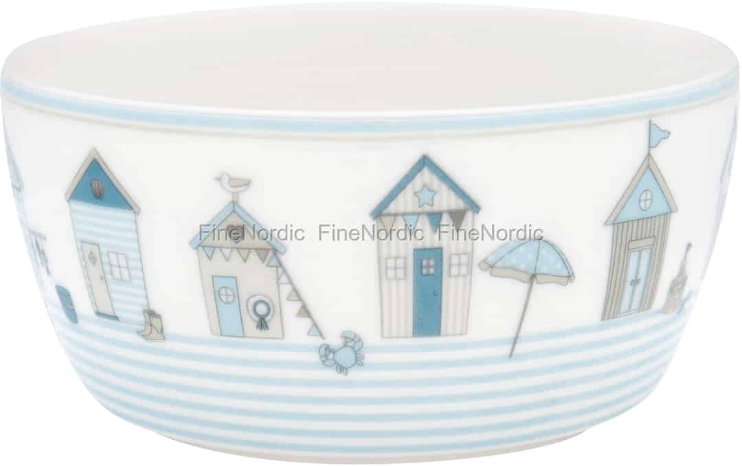 Die Ellison Pale Blue Kinderschüssel von GreenGate ist mit charmanten Strandmotiven geschmückt. Auf dieser bezaubernden Porzellanschale können Sie Strandhütten, Krabben, Sonnenschirme und vieles mehr sehen. Sie können sie gut mit dem Ellison Pale Blue Kinderbecher und dem Ellison Pale Blue Kinderteller kombinieren, welche Sie auch beide in unserem Webshop finden können. Wenn Ihnen dieses Muster genauso gut gefällt wie uns, dann sollten Sie sich vielleicht auch die anderen Ellison Pale Blue Waren ansehen, die mit demselben schönen Print verziert sind. Die Ellison Produkte sind auch in einer Pale Pink Version erhältlich.