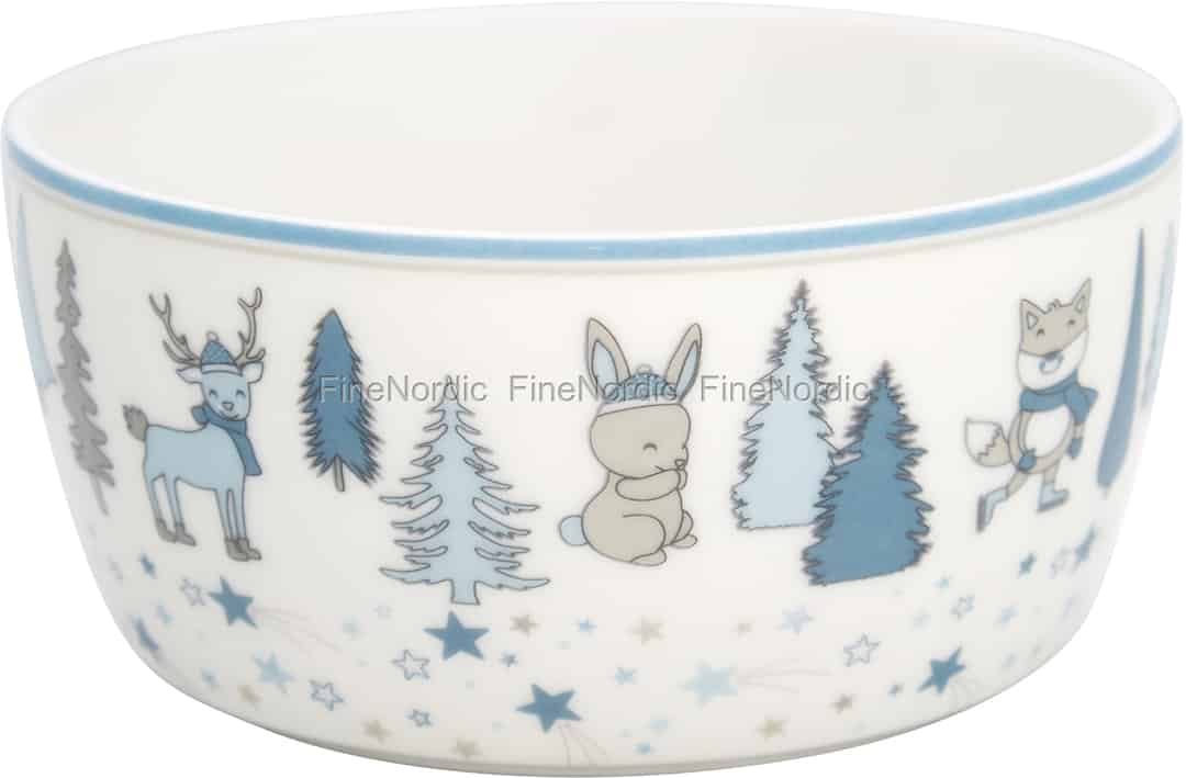 Suchen Sie nach einem hübschen Kindergeschirr? Dann schauen Sie sich doch mal diese Forrest Pale Blue Kinderschale von GreenGate an. Die Stoneware Schüssel ist mit entzückenden Tieren in verschiedenen Blau- und Grautönen dekoriert, umgeben von Bäumen und Sternen. Wenn man kleine Kinder hat, dann sind Kinderschüsseln so praktisch, weil sie zum Servieren vieler verschiedener Mahlzeiten verwendet werden können. Müsli zum Frühstück, etwas Brei zum Mittagessen, Suppe zum Abendessen und für vieles mehr. Diese Porzellanschale lässt sich gut mit den anderen Produkten der zauberhaften Forrest Serie von GreenGate kombinieren.