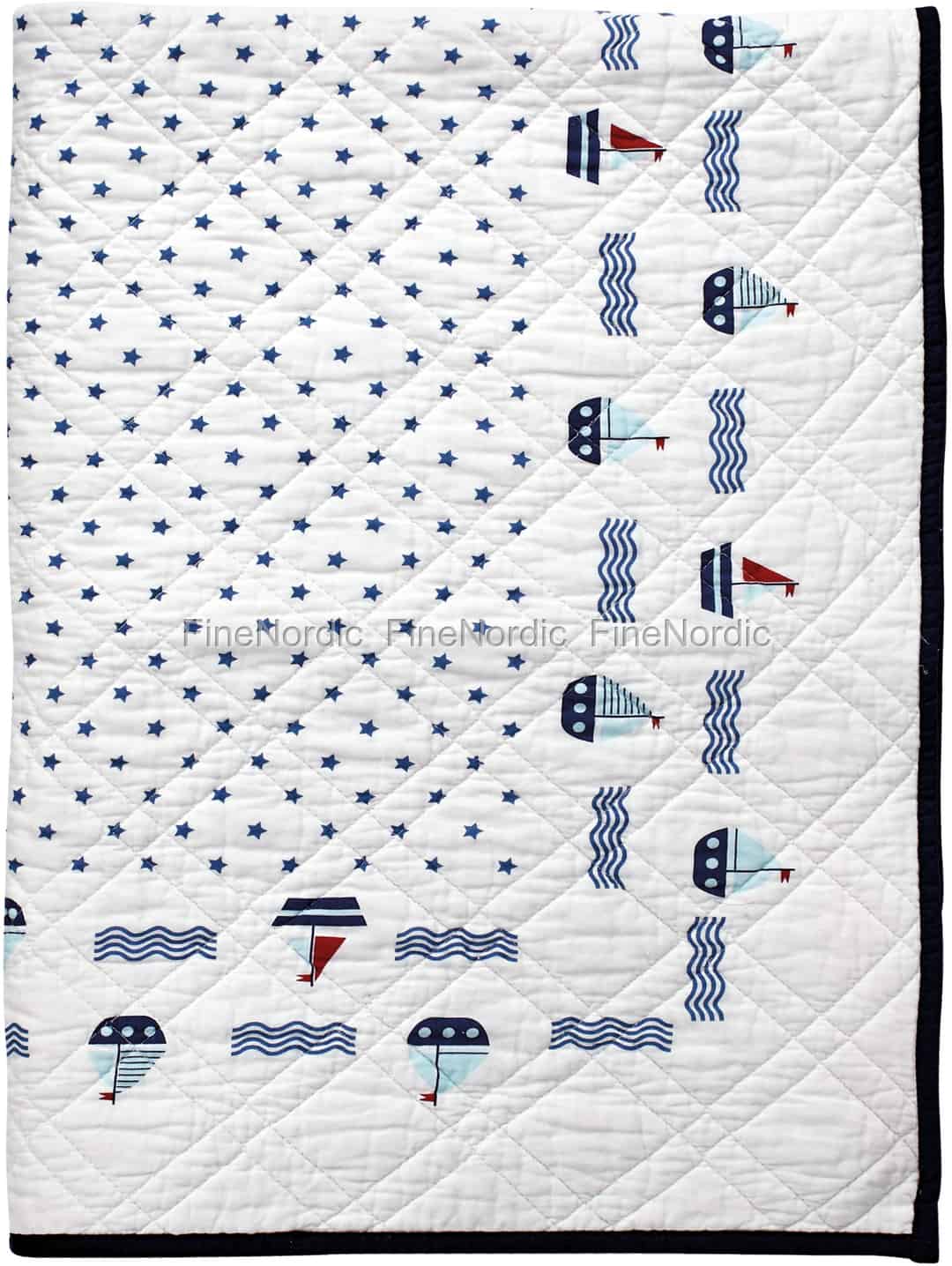 Diese bezaubernde Kindertagesdecke von GreenGate ist der krönende Mittelpunkt im Kinderzimmer. Wir lieben den gesteppten Look und das schöne Muster von Noah White, welches aus kleinen Segelbooten, Wellen und Sternchen besteht und von einem blauen Rand eingerahmt wird. Decken Sie das Bett Ihres Kindes damit zu oder nutzen Sie sie als Kinderkuscheldecke für die Couch. Sie besteht aus hochwertiger Baumwolle und kann bei 30 ° C gewaschen werden. Schauen Sie sich gerne auch die passenden Kissenhüllen und Bettwäsche Sets, sowie alle anderen fantastischen Produkte der Noah White Serie, an. Sie sind wunderbare Geschenkideen für Ihren kleinen Lieblingsmensch.