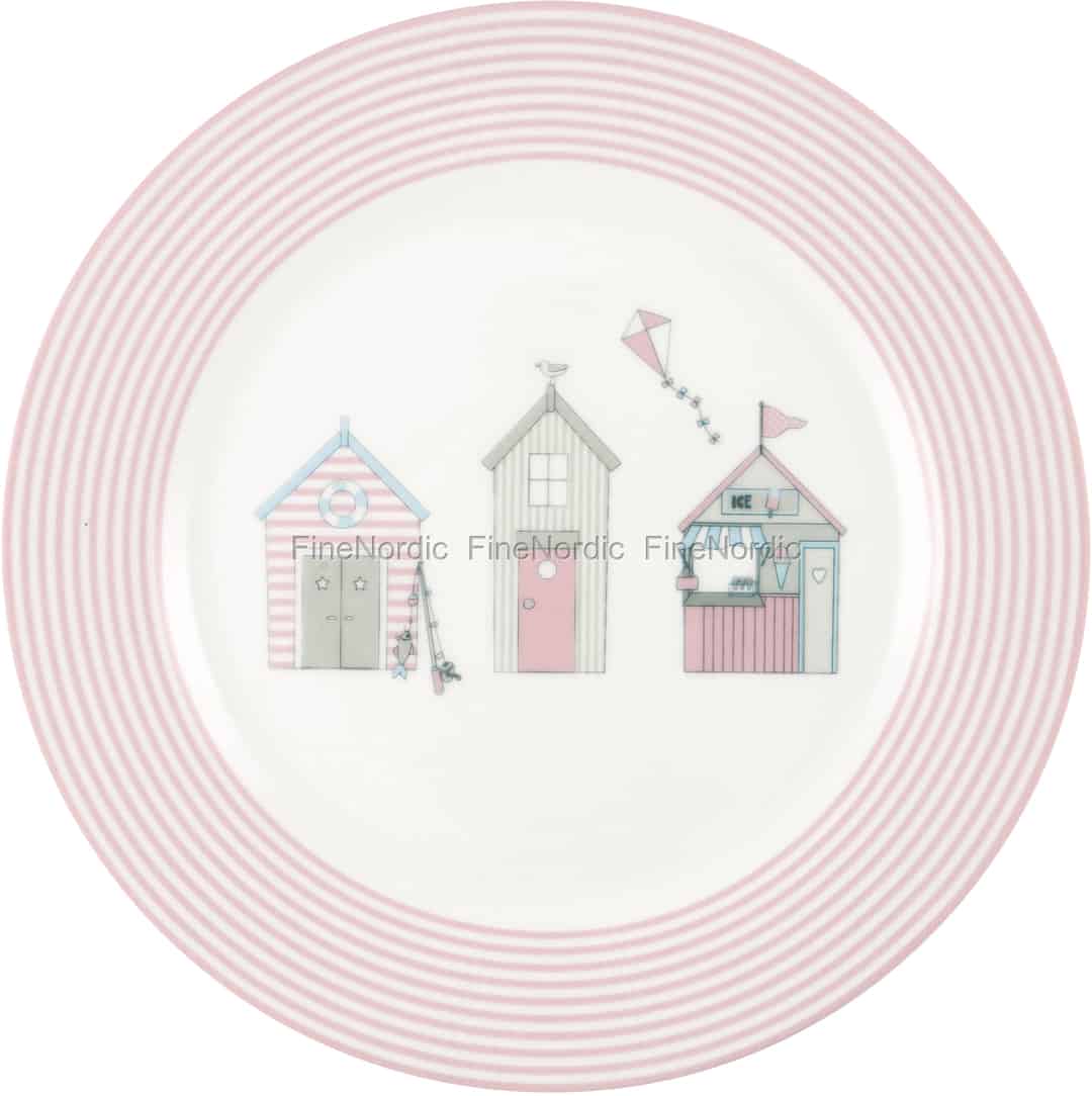 Der Ellison Pale Pink Kinderteller von GreenGate sieht wirklich allerliebst aus. Der weiße Teller hat einen rosa gestreiften Rand und die Mitte des Tellers ist mit drei niedlichen Strandhütten geschmückt. Wir lieben all die kleinen Details auf diesem Porzellanteller, wie zum Beispiel die Möwe, die auf dem Dach eines der Häuschen sitzt, oder den Drachen, der in der Luft rumschwirrt, und auch den kleinen Fisch, der an der Angel hängt. Die verschiedenen Pastellfarben der drei unterschiedlich aussehenden Häuser harmonieren gut miteinander und tragen zum hübschen Gesamtbild des runden Tellers bei. Der Ellison Pale Pink Teller kann gut mit den anderen Produkten aus der Ellison Serie von GreenGate kombiniert werden. Er ist sowohl spülmaschinen- als auch mikrowellengeeignet, was ihn zu einem sehr praktischen Teller macht, besonders für den geschäftigen Alltag. Schauen Sie sich in unserem Webshop gerne mal all die bezaubernden Waren an, die wir aus dieser entzückenden Kinderserie anzubieten haben.