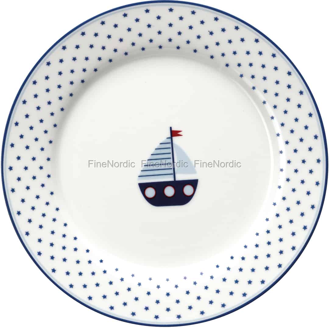 Der Kinderteller Noah Blue von GreenGate wird in der Mitte von einem kleinen Segelschiff geschmückt und am Rand entlang sieht man viele kleine blaue Sternchen. Der runde Teller hat einen Durchmesser von 20 cm und kann zum Frühstück, Mittag- und Abendessen verwendet werden. Er ist sowohl spülmaschinen- als auch mikrowellengeeignet, sodass der Abwasch oder das erwärmen einer Mahlzeit ruckzuck erledigt werden kann. Kombinieren Sie ihn mit ein paar der anderen charmanten Noah Blue Produkte, welche Sie auch hier in unserem Online-Shop entdecken können.