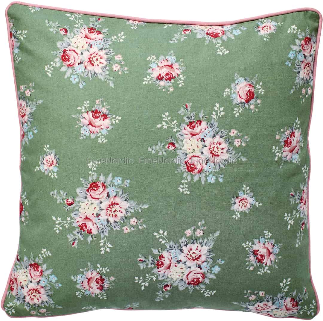 Wunderschöne Blumensträuße können auf diesem schönen Aurelia Green Kissenbezug von GreenGate bewundert werden. Der Hintergrund des Kissenbezugs ist grün, worauf die bunten Blumen besonders gut zur Geltung kommen. Dieses blumige Design verleiht dem Raum einen Hauch von Romantik und legt man es auf das Sofa, dann sieht dieses gleich gemütlich und einladend aus. Die Kissenhülle passt perfekt in ein Dekor im Landhausstil und verleiht dem monochromen Interieur eines modernen Hauses etwas Weiches. Wenn Sie Lust auf Veränderung haben, dann können Sie sie einfach umdrehen und das hübsch gestreifte Design auf der anderen Seite genießen.