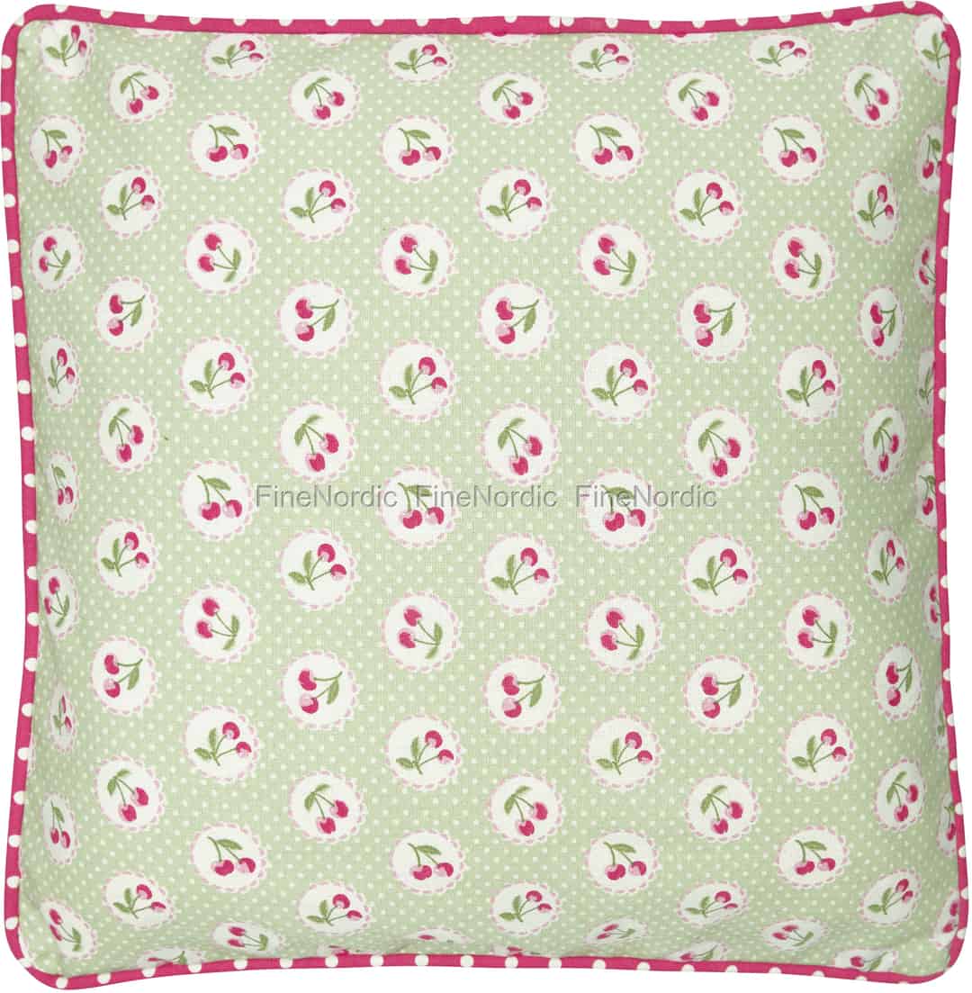 Die GreenGate Cherry Berry Pale Green Kissenhülle überzeugt mit ihren hübschen Farbkombinationen und dem Overall Print, der auf der Vorderseite genauso aussieht wie auf der Rückseite. Die hellgrüne Kissenhülle ist mit kleinen, weißen Pünktchen geschmückt und zwischendrin sieht man weiße Kreise. Die Kreise werden von einer rosa Strichlinie umkreist und in jedem Kreis befindet sich ein Paar Kirschen. Das Kissen ist von einem roten Rand mit weißen Punkten eingerahmt. Der quadratische Kissenbezug wird Ihre Couch genauso schön schmücken wie Ihr Bett oder Ihren Lehnstuhl. Wenn Ihnen das Cherry Berry Pale Green Muster genauso gut gefällt wie uns, dann schauen Sie sich auch gerne mal die anderen Produkte aus dieser Serie an, welche Sie alle gut mit der Cherry Berry Pale Green Kissenhülle kombinieren können.