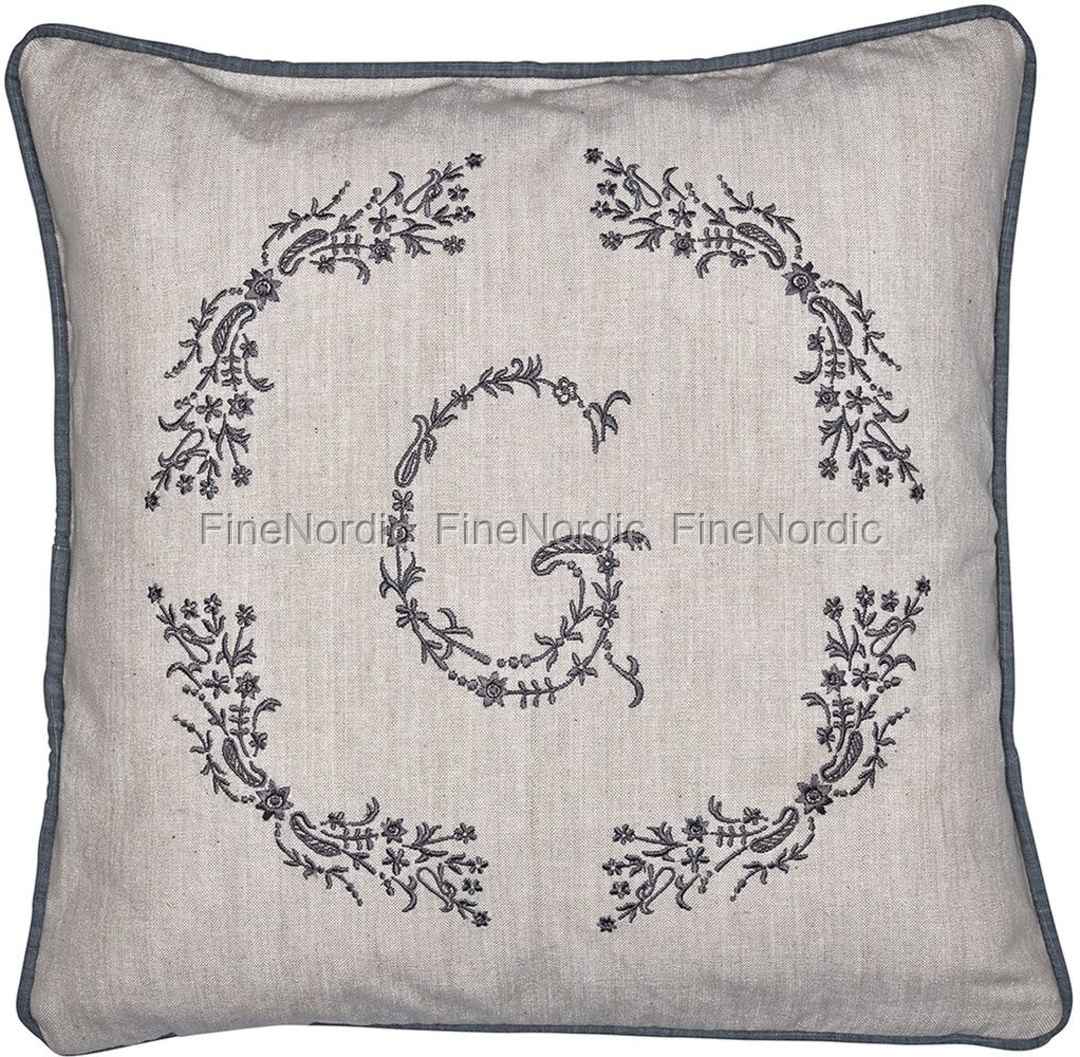 Kissenhülle - Cushion Cover G Dark Grey with Embroidery 40 x 40 cm, von GreenGate.
