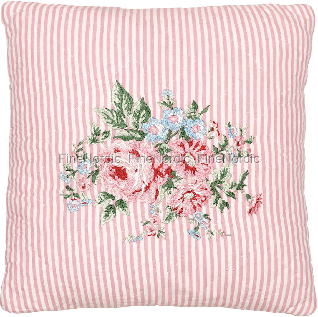 Ein schönes Kissen kann eine gewöhnliche Couch ganz plötzlich total spektakulär aussehen lassen! Genau wie diese Marley Pale Pink Kissenhülle von GreenGate. Die Vorder- und Rückseite haben jeweils einen rosa gestreiften Hintergrund, und auf der Vorderseite ist dazu ein wunderschön gestickter Blumenstrauß zu sehen. Der sehr detaillierte Blumenstrauß besteht aus verschiedenen Rosatönen sowie den Farben Grün, Rot, Weiß und Blau. GreenGate ist hier mal wieder eine fantastische Kombination an Farben gelungen. Auf der Rückseite des Kissens ist das GreenGate Label aufgenäht. An der Oberseite des Kissenbezugs befindet sich ein Reißverschluss, so dass Sie ihn leicht mit passender Kissenfüllung füllen können. (Eine Kissenfüllung in der Größe 40 cm x 40 cm kann separat in unserem Webshop erworben werden.) Verleihen Sie Ihrer Couch oder Ihrem Lieblingssessel, mit diesem fantastisch aussehenden Kissenbezug von GreenGate, einen besonderen Look.