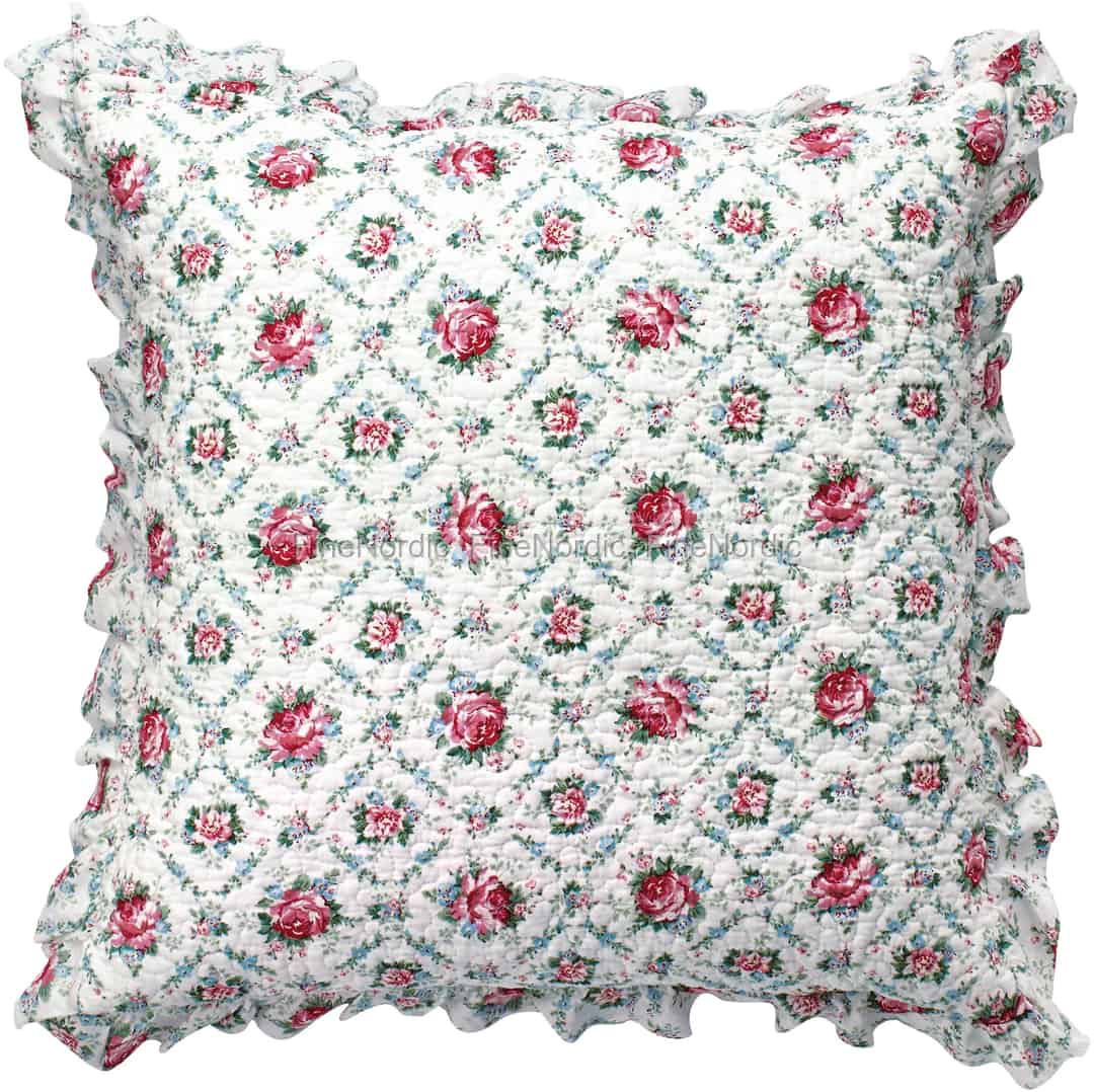 Die GreenGate Kissenhülle Malene Petit White ist mit einem wunderschönen Rosenmuster überzogen und an den Rändern wird sie von Rüschen umrahmt. Der 50 cm x 50 cm große Kissenbezug besteht aus hochwertiger Baumwolle. Er wird auf einer Couch, einem Bett oder einem Sessel und auch in Kombination mit den Tagesdecken von Malene Petit White, welche ebenfalls zum Sortiment gehören, gut aussehen. Die passende Kissenfüllung können Sie separat in unserem Webshop erwerben.