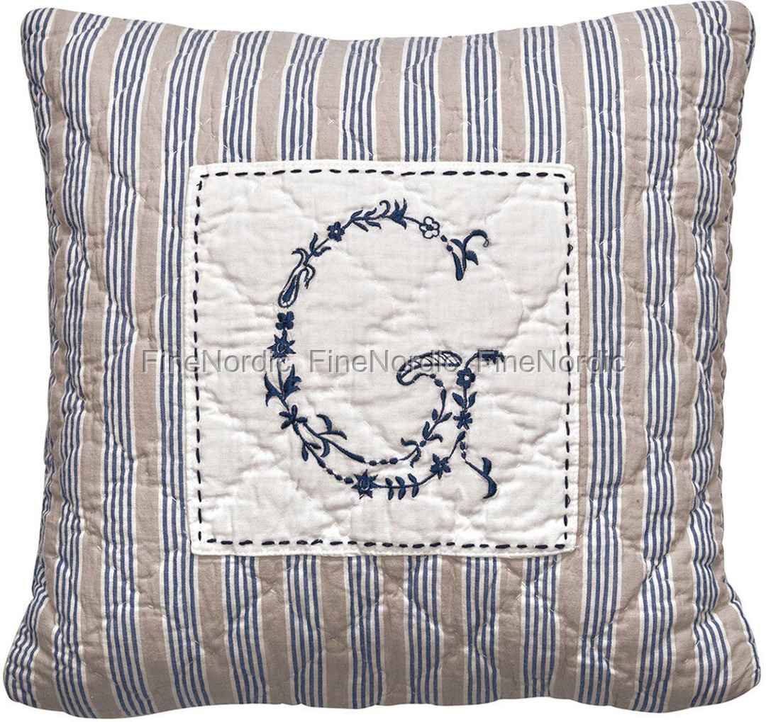 Kissenhülle - Quilted Cushion Cover Nora Blue with Embroidery 40 x 40 cm, von GreenGate.