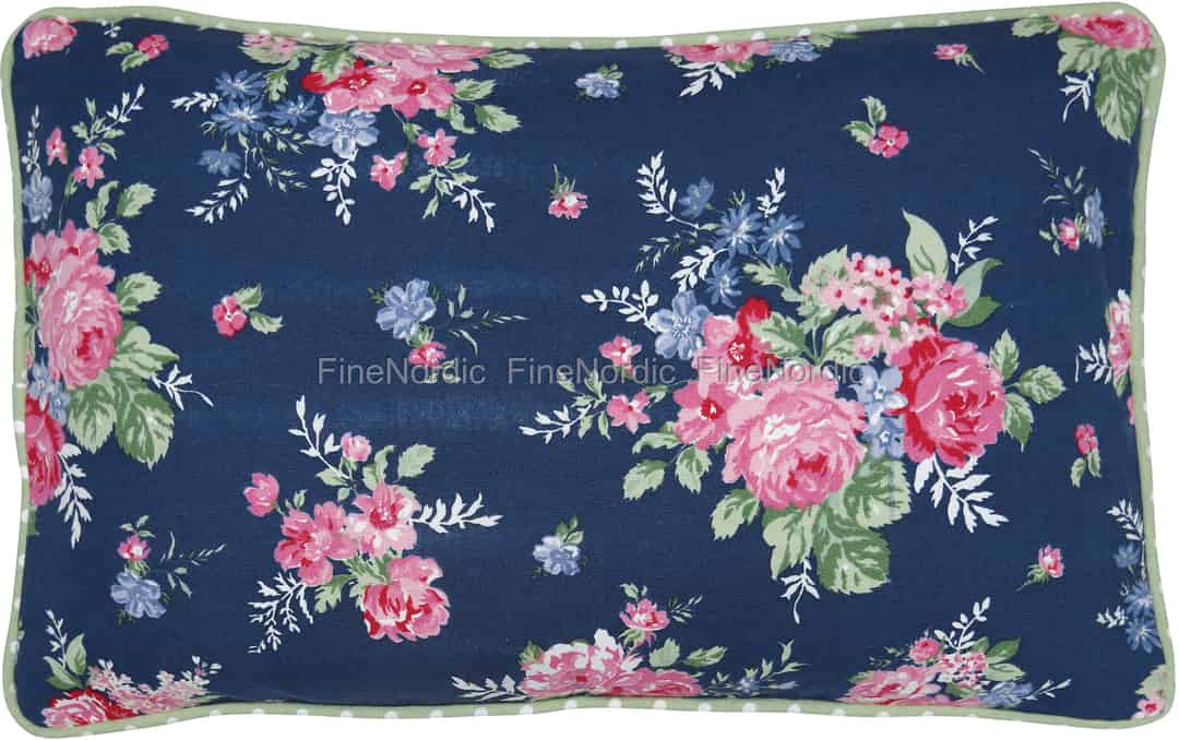Die blaue Rose Dark Blue Kissenhülle von GreenGate ist mit einem hübschen Blumenmuster in verschiedenen Rot-, Blau- und Grüntönen geschmückt. Der rechteckige Kissenbezug wird von einem grünen, weißgepunkteten Rand umrahmt, und die Rückseite der Kissenhülle ist lila und ist mit weißen Pünktchen verziert. Der Baumwollbezug kann an seinem Reißverschluss aufgemacht werden und bei 40 C Grad gewaschen werden. Sie können das Kissen gut mit anderen GreenGate Kissen kombinieren. Mischen Sie es mit anderen Größen und auch mit Kissenhüllen von anderen Serien und lassen Sie Ihr Bett, Sofa oder Ihren Sessel so noch einladender und interessanter aussehen.