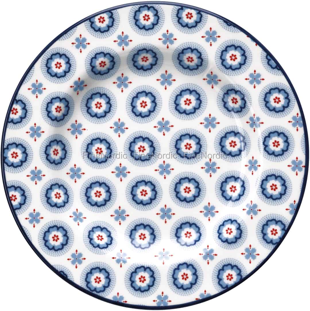 Kleine Vorspeisen, Snacks und auch Desserts schmecken gleich doppelt so lecker, wenn Sie sie von diesem hübschen Erin Petit Pale Blue Teller von GreenGate essen werden. Dieser kleine Teller hat einen Durchmesser von 15 cm und ist sowohl spülmaschinen- als auch mikrowellengeeignet. Er ist mit einem wunderschönen Blumenmuster in Rot, Weiß und verschiedenen Blautönen geschmückt. Sie können ihn mit ein paar der einfarbigen Geschirrteile der GreenGate Alice Serie mischen und dann wird er besonders hervorstechen. Schauen Sie sich gerne mal die große Auswahl an GreenGate Tellern an, die wir in unserem Webshop anzubieten haben.