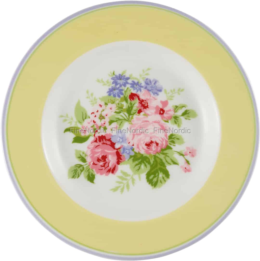 Lassen Sie mit dem kleinen Teller Rose Pale Yellow aus der Limited Edition von GreenGate etwas Sonne auf Ihren Tisch scheinen. Die hellgelbe Umrandung umkreist einen wunderschönen Blumenstrauß, der mit Rosen und anderen kleinen Blumen in sehr ansprechenden Pastellfarben abgebildet ist. Decken Sie Ihren Frühstückstisch stilvoll mit der passenden Latte Tasse, French Bowl und der Rose Pale Yellow Stoffserviette ein. Sie können ihn auch mit anderen GreenGate Serien kombinieren. Der kleine Teller ist eine wunderbare Ergänzung für Ihre GreenGate Sammlung. Es können nur zwei Teller pro Kunde bestellt werden und nur solange der Vorrat reicht.