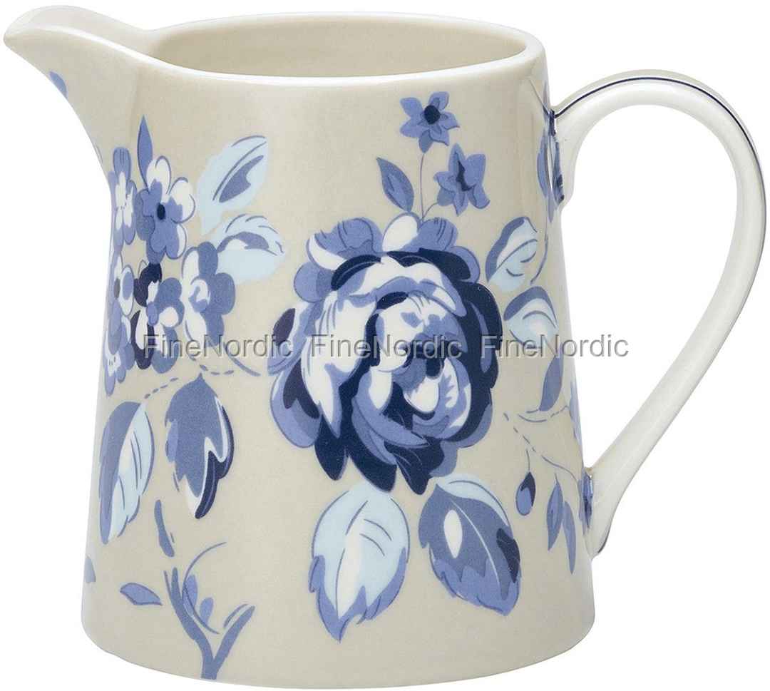 Das kleine Kännchen Amanda Dark Blue von GreenGate zieht sofort alle Blicke an sich. Das hübsche Blumenmuster in verschiedenen blauen Farbtönen auf hellgrauem Hintergrund ist der Highlight auf dem Kaffeetisch. Gerne schenkt man sich damit Milch in seinen Kaffee. Die 0,5 Liter Kanne kann natürlich auch für andere Flüssigkeiten genutzt werden. Sie kann gut mit den anderen Amanda Dark Blue Produkten von GreenGate kombiniert werden, aber auch zusammen mit dem Alice Dark Blue Geschirr macht sie eine gute Figur. Ein Kännchen zum verlieben ist die Amanda Dark Blue Kanne von GreenGate.