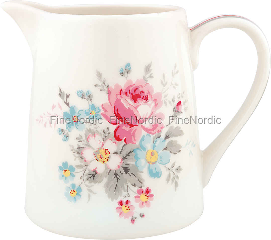Suchen Sie einen vielseitigen Krug für Ihren perfekten Couchtisch? Dann ist der Marie Pale Grey Krug von GreenGate ideal für Sie! In ihn passen bis zu 500ml Flüssigkeit, sodass er perfekt zum Servieren von Wasser oder Milch ist. Alternativ können Sie den Krug auch als kleine Vase für Blumen verwendet werden. Das schöne rosa und blaue Blumenmuster und die roten und grauen Streifen am Henkel machen ihn zu einem sehr einzigartigen Porzellanstück.