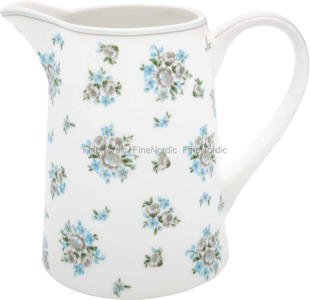 Wasser, Saft und noch vieles mehr können mit diesem Nicoline Beige Krug von GreenGate stilvoll serviert werden. Der 1 Liter Krug besteht aus feinem Porzellan und ist sowohl spülmaschinen- als auch mikrowellengeeignet. Wir sind begeistert von seinem hübschen Design und den hellblauen und beigen Blumensträußen. Der Porzellankrug ist Teil der Nicoline Beige Serie von GreenGate und kann sehr schön mit den anderen Produkten dieser Serie kombiniert werden. Alternativ kann die Kanne auch als Vase verwendet werden. Fügen Sie ihr einfach ein paar frisch gepflückte Blumen aus dem Garten hinzu und schon wird sie zum schönen Herzstück auf Ihrem Esstisch.