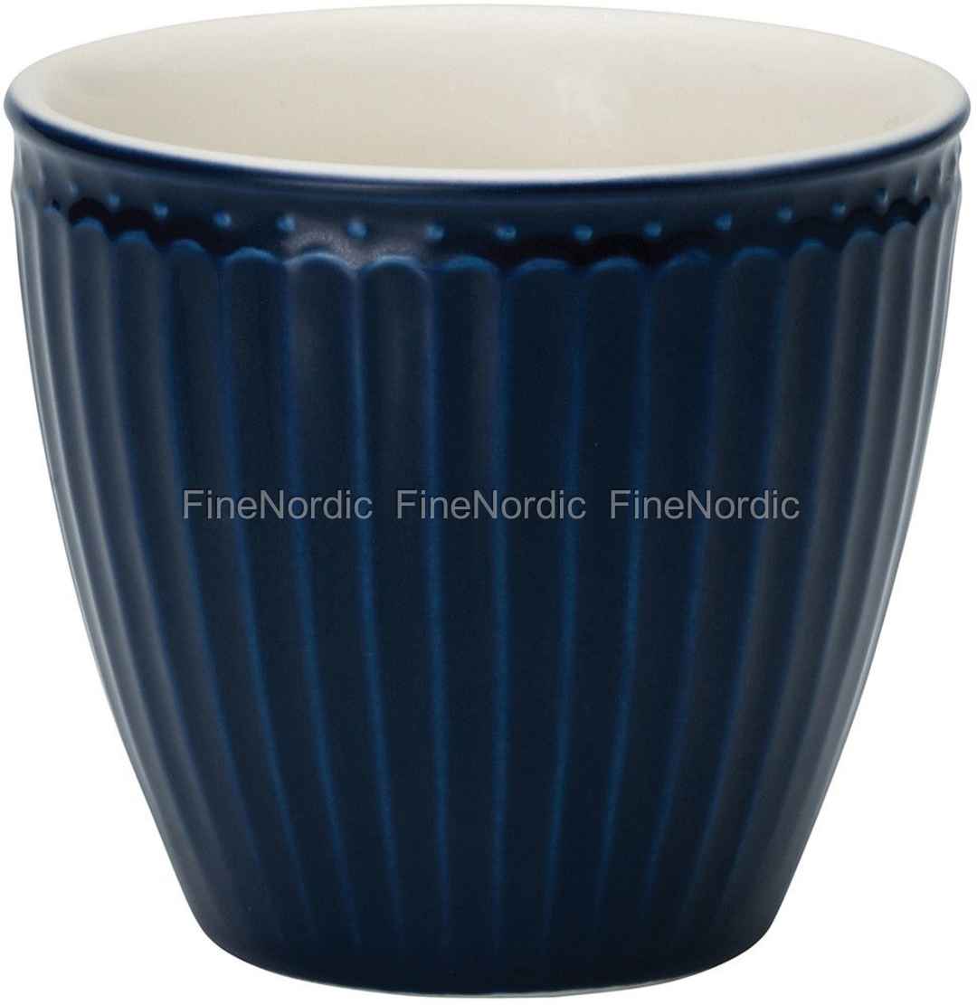Sind Sie ein Fan der Farbe Blau? Dann könnte diese Latte Tasse für Sie interessant sein. Sie hat eine dunkelblaue Außenseite und die Innenseite ist hell. Die Latte Cup hat eine Kapazität von 300 ml und ist sowohl spülmaschinen- als auch mikrowellenfest. Das elegante gerippte Design ist typisch für die GreenGate Alice Serie. Decken Sie den Tisch mit dieser Tasse und zusammen mit den anderen Geschirrteilen der GreenGate Alice Dark Blue Serie oder mischen Sie sie mit anderem Alice Geschirr. Neben gemustertem GreenGate Geschirr sieht sie auch fantastisch aus.