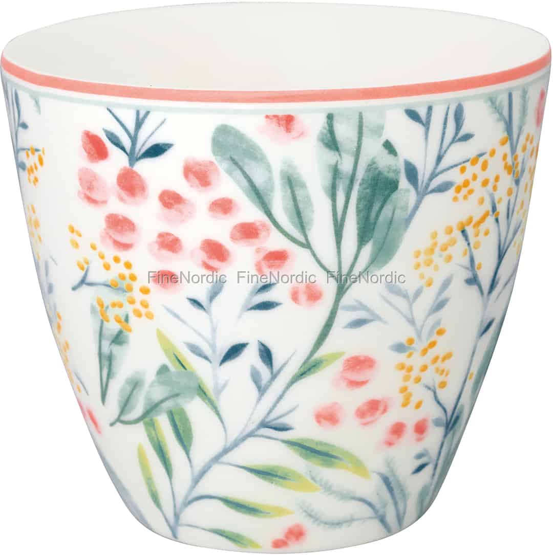 GreenGate Latte Cups sind sehr beliebt und viele sammeln gerne die verschiedenen Tassen. Wir haben eine große Auswahl an GreenGate Lattebechern in unserem Webshop, und den Megan White Latte Cup, mögen wir besonders gerne. Sein Muster ist so hübsch wie ein Gemälde und zeigt sommerliche Zweige in verschiedenen Pastellfarben. Die Tasse hat eine Kapazität von 300 ml und ist sowohl spülmaschinen- als auch mikrowellenfest. Genießen Sie Heiß- oder Kaltgetränke damit oder verwenden Sie den Latte Cup als kleine Snackschüssel für Gemüsesticks oder Obstscheiben. Wenn Sie dieses Design genauso mögen wie wir, dann schauen Sie sich doch mal die verschiedenen Megan White Produkte an, die wir hier in unserem Webshop anbieten. Sie finden hier Megan White Geschirr, Textilien, Bambusprodukte und mehr.
