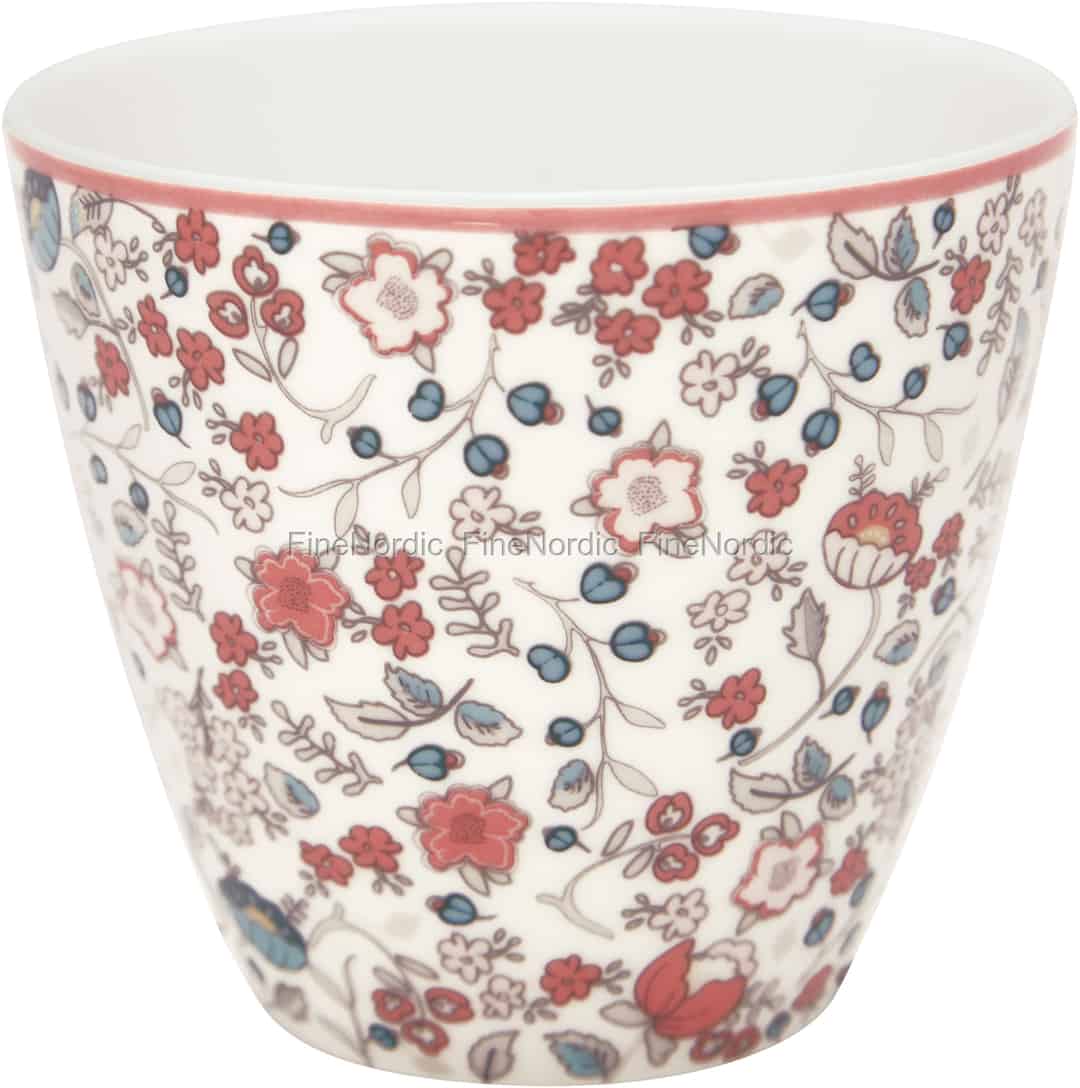 Das verspielte Blumenmuster und die schönen Farbkombinationen machen die Miley White Latte Cup zu einem wahren Hingucker. Wir lieben ihre hübschen korallfarbene und blauen Details auf ihrem weißen Hintergrund. Sie können diese Stoneware gut mit anderen GreenGate Serien mischen, wie z.B. Sienna White, Alice Coral oder Maxime Coral, um nur ein paar wenige zu nennen. Genießen Sie einen Kaffee, heiße Schokolade oder vielleicht etwas Milch oder Saft aus diesem attraktiven Becher. Die Latte Cups von GreenGate sind sehr beliebt und schon weltweit zu Sammlerstücken geworden.