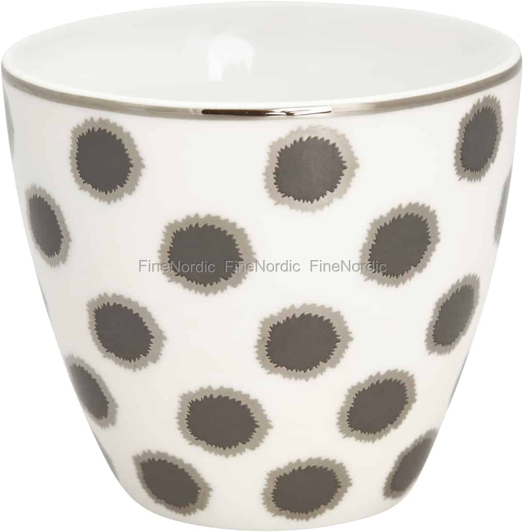 Der Savannah White Latte Cup von GreenGate ist ein echter Hingucker, mit seinen Punkten in abgestuftem Grauton auf weißem Hintergrund. Die Porzellantasse kann als Trinkbecher, als kleiner Blumentopf, als Stiftehalter oder sogar zum Servieren eines kleinen Snacks, wie vielleicht Gemüsesticks, verwendet werden. Sie können ihn gut mit der Stoneware aus anderen GreenGate Serien kombinieren, z.B. mit der Amira White oder der Alice White Serie, um nur ein paar zu nennen. Die Latte Cups von GreenGate haben sich mittlerweile zu Sammlerstücken entwickelt und sind auf der ganzen Welt beliebt.
