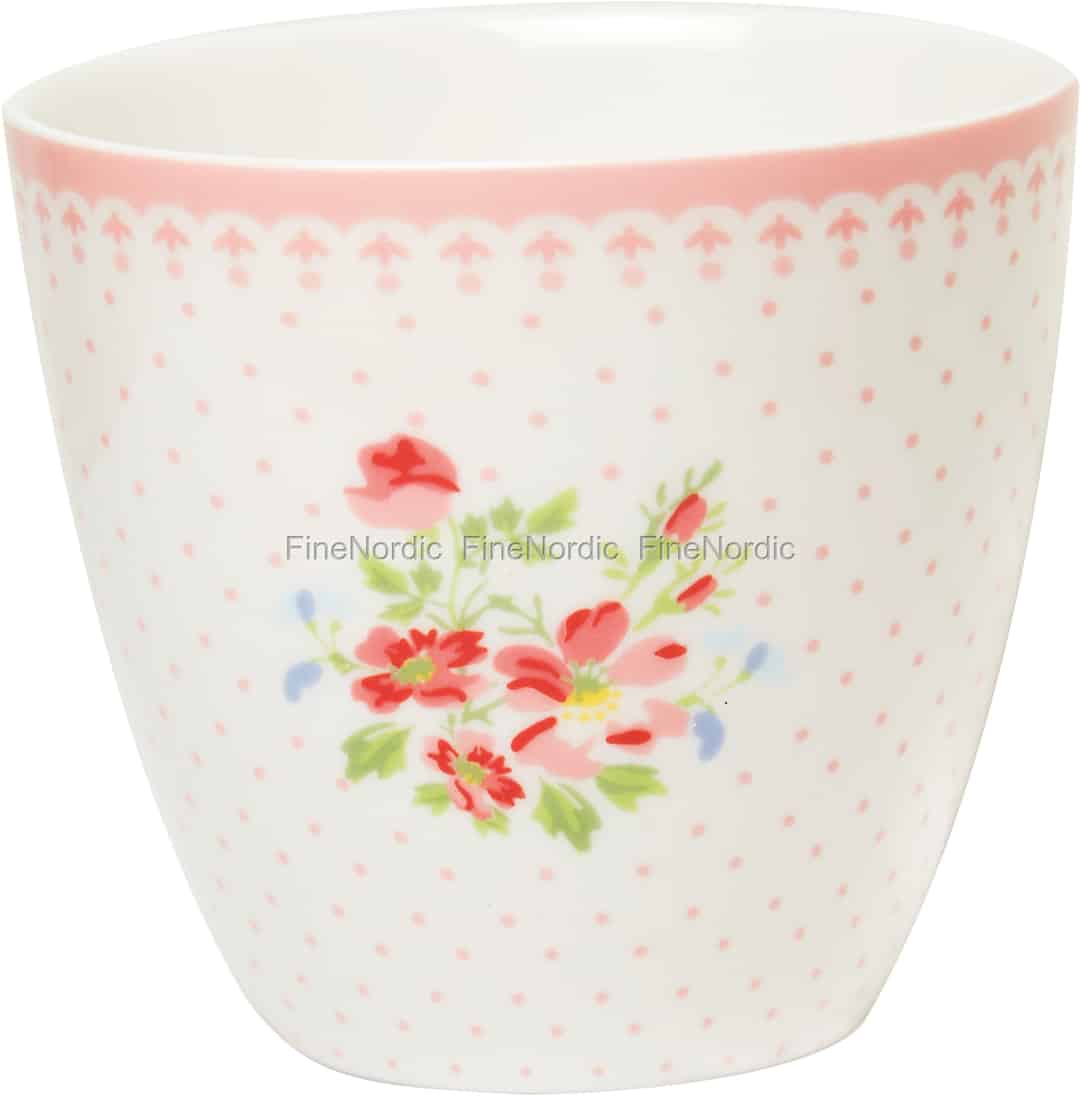 Diese charmant aussehende Latte Cup ist Teil der 2. limitierten Zwischensaison-Kollektion 2020 von GreenGate und nur für kurze Zeit erhältlich. Der Porzellanbecher ist mit rosa Punkten und hübschen pastellfarbenen Blumen geschmückt. Die henkellose Tasse hat ein Fassungsvermögen von 300 ml und ist sowohl spülmaschinen- als auch mikrowellengeeignet. Genießen Sie einen Kaffee oder einen heißen Kakao von dieser gut aussehenden Latte Cup. Sie können sie in Kombination mit den anderen Sinja White Produkten verwenden oder sie mit Geschirr von anderen GreenGate Serien mischen. Die Sinja White Latte Tasse wird so richtig auffallen und hervorstechen, wenn Sie sie zusammen mit den musterlosen GreenGate Alice Geschirrteilen verwenden. Die Möglichkeit, die verschiedenen GreenGate Serien schön miteinander kombinieren zu können, ist nur einer der Gründe, warum die GreenGate Produkte so beliebt sind.