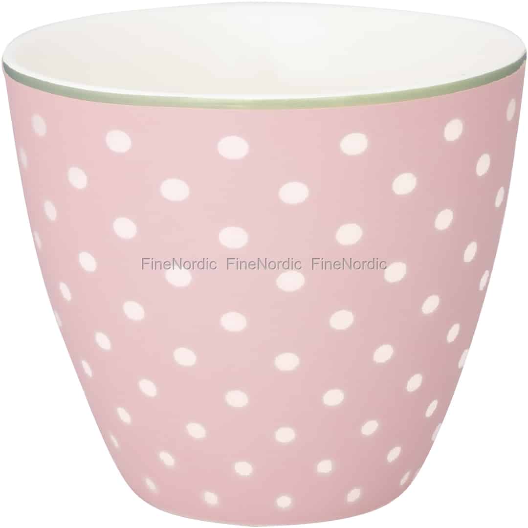 Wenn Sie ein Fan der Farbe Rosa sind, dann werden Sie diesen GreenGate Latte Cup Spot Pale Pink lieben. Der Cup ist übersäht mit weißen Tupfen auf einem blassrosa Hintergrund und den oberen Rand der Tasse umkreist eine hellgrüne Linie. Er ist ein schöner Cup ganz für sich selbst und noch beeindruckender, wenn er mit den andersfarbigen Spot Latte Cups gemischt wird. Sie können Ihre heißen oder kalten Lieblingsgetränke davon trinken und er wäre auch eine wunderbare Geschenkidee für einen Latte Cup Liebhaber. Wenn Sie das fröhliche GreenGate Spot Design mögen, dann schauen Sie sich doch bitte auch die anderen GreenGate Spot Produkte an, die wir in unserem Webshop anbieten. Sie finden sie dort in den Farben blassrosa, blassgrün, Lavendel, blassgelb und blassblau.