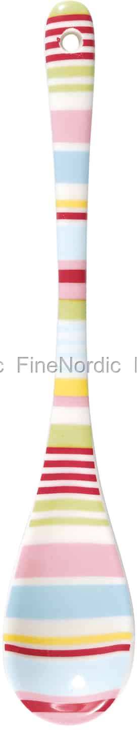 Dieser mehrfarbige Löffel sieht genauso entzückend aus, wie sein Name klingt: Pipa! Der hellfarbene Löffel ist mit ein paar dünneren und auch dickeren Querstreifen in Rot und verschiedenen Pastellfarben geschmückt. Er ist 15,5 cm lang und am Ende des Griffs befindet sich ein rundes Loch, an dem Sie ihn aufhängen können. Hängen Sie ihn an einen Haken oder bewahren Sie ihn in Ihrer Besteckschublade auf, oder wo auch immer er in Reichweite ist. Dieser GreenGate Löffel ist ein schöner Eierlöffel, Marmeladenlöffel und auch der perfekte Löffel, zum Tee oder Kaffee umrühren. Sammeln Sie GreenGate Löffel? Dann ist dieser eine wunderbare Ergänzung für Ihre Sammlung oder ein aufmerksames Geschenk für einen GreenGate Löffelsammler.