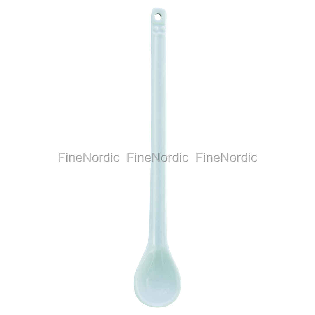 Die langen, schmalen Alice Löffel von GreenGate gibt es in verschiedenen Farben und sie sind vielseitig einsetzbar. Wie auch dieser Alice Pale Blue Löffel der als Honiglöffel, Eierlöffel und auch als Rührlöffel einfach eine hervorragende Figur macht. Das bekannte Alice Relief schmückt den Porzellanlöffel und am Ende vom Stiel ist eine runde Öffnung, womit man ihn gut aufhängen kann, sodass er immer in griffbarer Reichweite ist, wenn man ihn braucht. Nutzen Sie den hellblauen Stoneware Löffel zusammen mit den übrigen Alice Pale Blue Geschirrteilen, oder auch mit der Stoneware aus anderen GreenGate Serien.