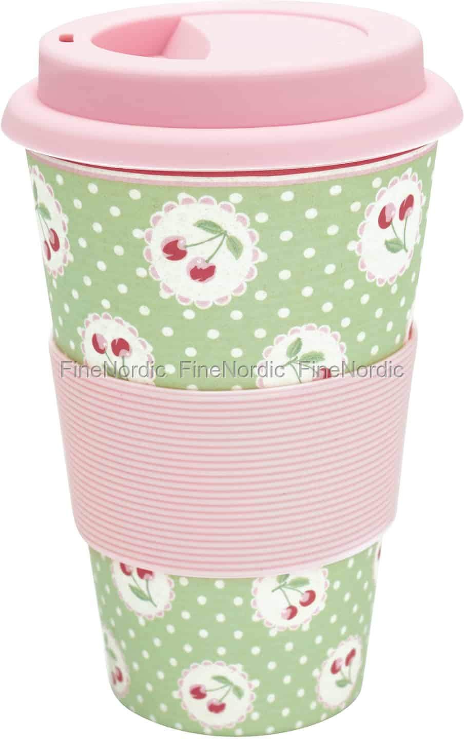 Müssen Sie sich jeden Morgen beeilen und haben keine Zeit, eine Tasse Kaffee zu trinken, bevor Sie das Haus verlassen? Dann wird dieser Reisebecher Cherry Berry Pale Green sehr nützlich sein. Er hat eine Kapazität von 400 ml und wird mit einem Silikondeckel und einer Manschette geliefert. Fügen Sie dem GreenGate Becher einfach etwas Kaffee hinzu, setzen Sie den Deckel drauf und bringen Sie die Manschette an und los geht’s! Dieser hübsche To-Go Becher von GreenGate hält Ihren Kaffee heiß und dank seiner rosa Manschette, auch nur den Kaffee und nicht Ihre Finger.