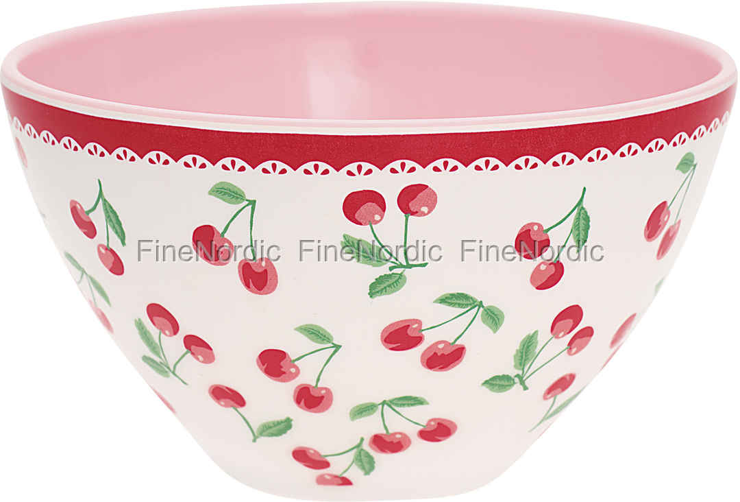 Mit der Müslischale Cherry White ist wirklich gut Kirschen essen! Und nicht nur Kirschen. Aus der hübschen Kirschenschale aus Melamin kann man auch leckeren Obstsalat, ein Süppchen, oder Pudding speisen und als kleine Snackschale bietet sie sich auch an. Das frische Kirschenmuster macht gute Laune und ist dazu äußerst attraktiv. Wenn Sie von dem Cherry Muster genauso begeistert sind wie wir, dann müssen Sie sich unbedingt auch noch die anderen GreenGate Cherry Produkte anschauen. Drücken Sie einfach ein bisschen weiter unten auf dieser Seite auf „GreenGate Cherry“ und Sie werden automatisch zu den anderen Produkten dieser Serie geleitet.