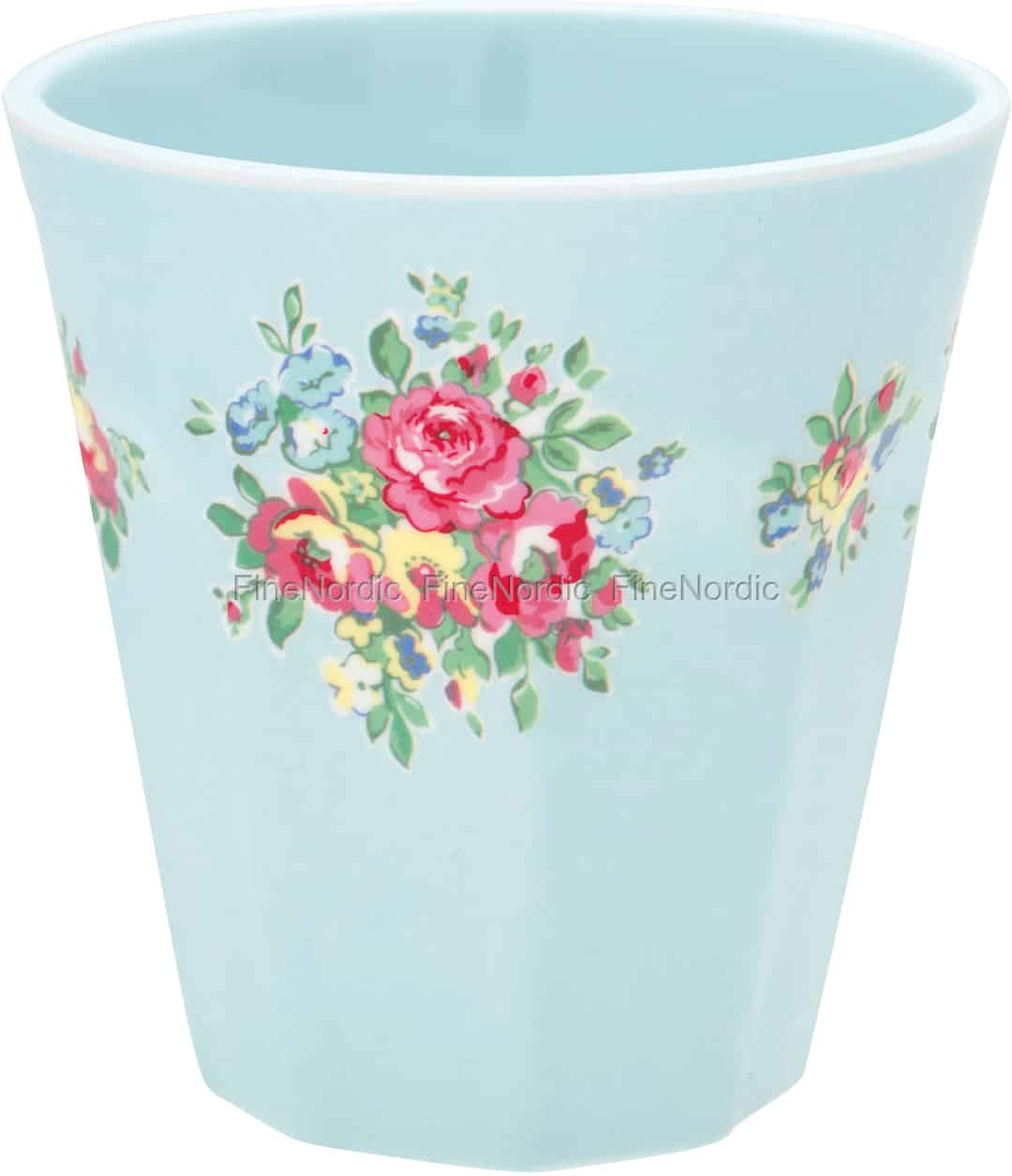 Die hellblaue Melamintasse Franka Pale Blue von GreenGate wird auf der oberen Hälfte ihrer Aussenseite mit hübschen Blumensträußen in bunten Farben geschmückt und die Innenseite der Tasse ist einfarbig hellblau. Der Melaminbecher kann gut mit anderen Produkten aus der Franka Pale Blue Serie gemischt werden und Sie können ihn auch mit anderen GreenGate Serien kombinieren. Ob Kakao, Saft oder Tee, alles schmeckt gleich doppelt so lecker aus dieser hübschen henkellosen Tasse. Nachdem Sie benutzt wurde, kann sie auf der oberen Schiene in der Spülmaschine gereinigt werden und ist dann schon bald wieder einsatzbereit.