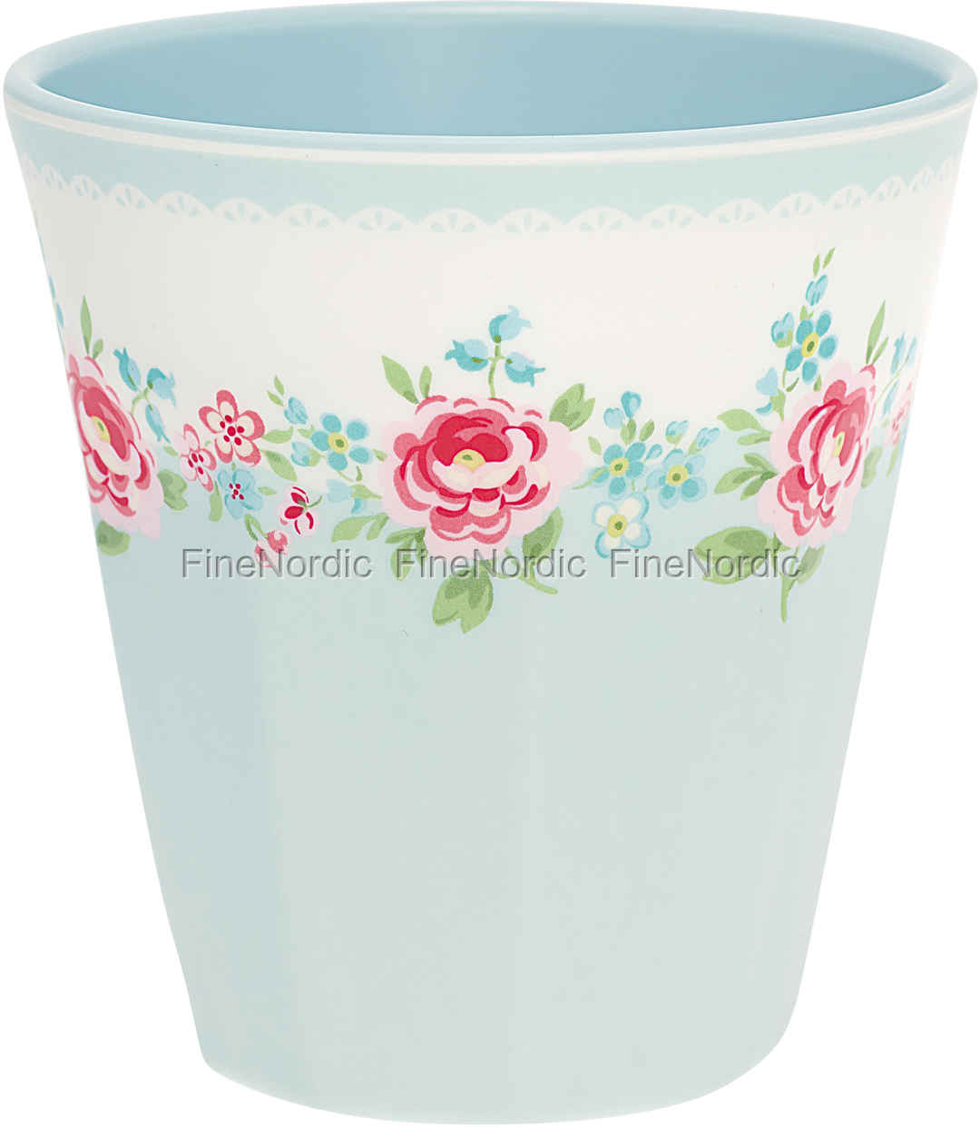 GreenGate’s Melamintasse Meryl Pale Blue mit ihrem klassischen Blumenmuster und perfekt aufeinander abgestimmten Farben gefällt uns ganz besonders gut. Praktisch für das Picknick, den Campingwagen oder die Gartenparty, denn die Tasse schaut nicht nur gut aus, sondern ist auch sehr solide. Ganze 200 ml Lieblingsgetränk passen in sie rein und wenn sie schmutzig ist, kann sie in oberen Geschirrkorb der Spülmaschine gewaschen werden. (Nicht in einer Industriespülmaschine) Solide sein, gut ausschauend und praktisch sein, so eine Tasse mögen wir!