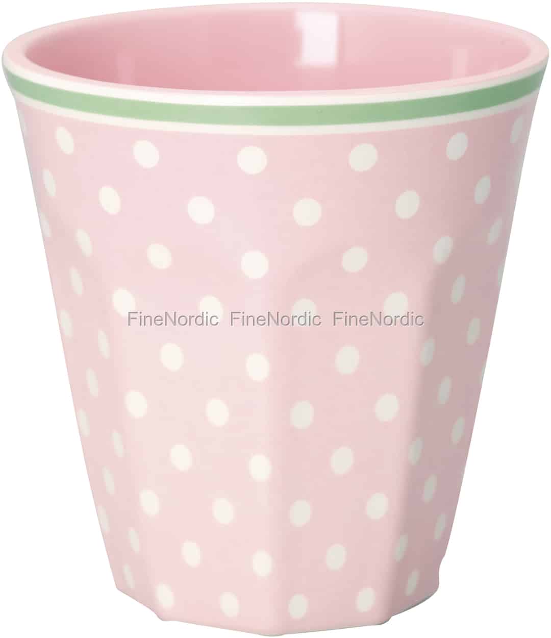 Sind Sie auch ein Melamin Fan? Dann ist diese GreenGate Melamintasse Spot Pale Pink vielleicht genau das Richtige für Sie. Die stabile Tasse hat einen Kapazität von 220 ml und ist auch für Kinderhände geeignet. Sie ist die perfekte Tasse für die Terrasse oder zum Mitnehmen für ein Picknick. Die Außenseite ist in rosa und weißen Punkten bedeckt. Entlang dem Rand sieht man einen blassgrüne Linie. Die Melamintasse Spot Pale Pink lässt sich wunderbar mit den anderen Melaminprodukten von GreenGate kombinieren.