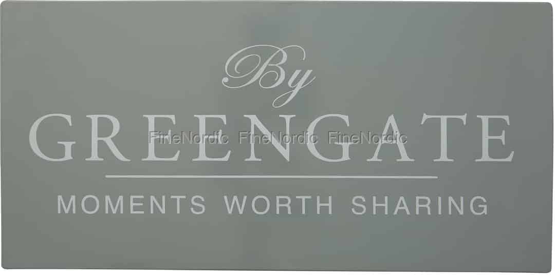 Das rechteckige, graue GreenGate Metallschild ist ein absolutes Must-Have für jeden GreenGate Liebhaber. Die Worte By GreenGate sind darauf zu lesen und auch GreenGates Motto: Moments worth sharing stehen darauf. Stellen Sie das Schild zusammen mit Ihrer GreenGate Sammlung auf, oder hängen Sie es, an den zwei vorhandenen Aufhängevorrichtungen auf der Rückseite, an die Wand. Das GreenGate Metallschild ist eine schöne Geschenkidee für einen GreenGate Fan.