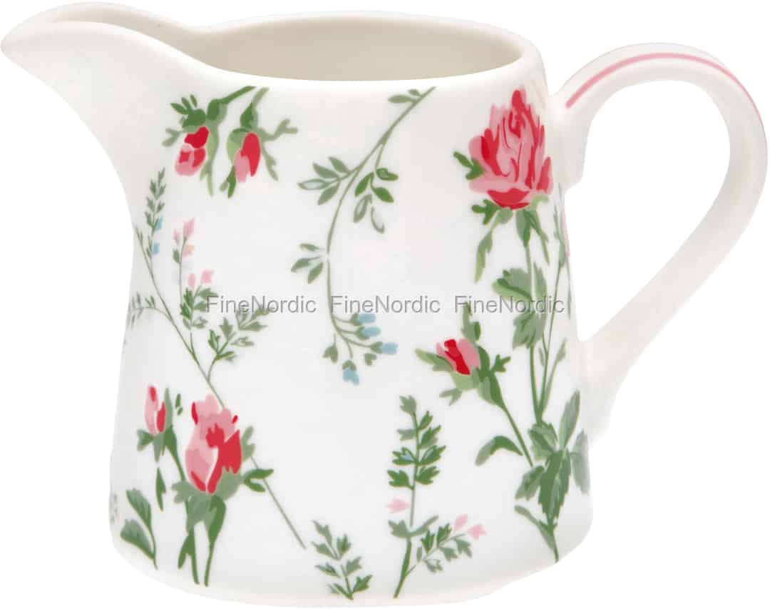 Das erste, was Sie sehen werden, wenn Sie sich dieses Constance White Milchkännchen von GreenGate ansehen, ist das hübsche Rosenmuster, das diesen kleinen Porzellankrug schmückt. Bei näherer Betrachtung werden Sie auch die kleinen hellblauen und rosa Blüten inmitten des Musters und die hübschen rosa Linien am Griff bemerken. Wir lieben die Kombinationen aus verschiedenen Blumen und Farben und seine äußerst ansprechende Form. Sie können ihn mit der Constance White Zuckerdose kombinieren, welche Sie auch in unserem Webshop finden können. Stellen Sie ihn zusammen mit anderen Constance White Porzellanstücken auf den Esstisch und Sie erhalten einen schön gedeckten Tisch, von dem Ihre Familie und Freunde noch lange schwärmen werden.
