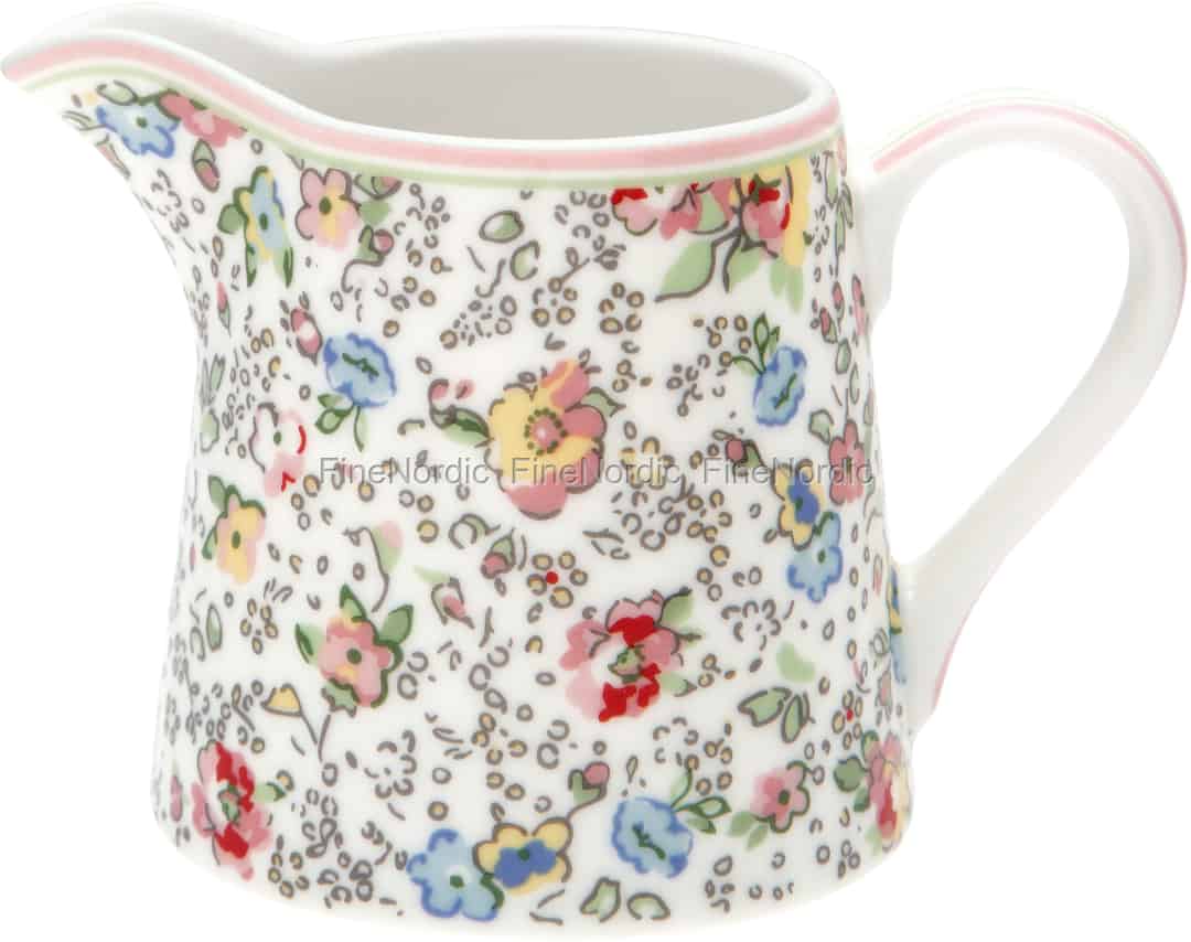 Das GreenGate Vivianne White Milchkännchen sieht mit seinem belebten pastellfarbenen Blumenmuster einfach wunderschön aus. Dieser kleine Porzellankrug kann nicht nur für Milch verwendet werden. Sie können ihn zum Beispiel auch mit Sirup oder Soße füllen, um es mit Ihren Pfannkuchen am Morgen oder dem Braten zum Abendessen zu servieren. Er ist sowohl spülmaschinen- als auch mikrowellengeeignet, was ihn in einem geschäftigen Alltag sehr praktisch macht. Das bunte Milchkännchen kann mit der Vivianne White Zuckerdose oder auch mit den anderen Porzellanprodukten derselben Serie kombiniert werden.