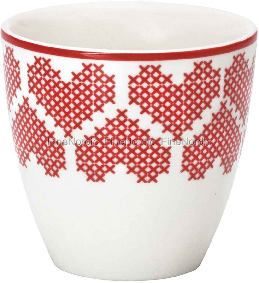 Klein aber oho, ist die Mini Latte Cup December Red von GreenGate. Die roten Herzen, die wie aufgestickt aussehen, umkreisen den oberen Rand der weißen Tasse und enden an der roten Linie, die die Tasse entlang der oberen Kante umläuft. Eine attraktive Tasse für den kleinen Durst zwischendurch.