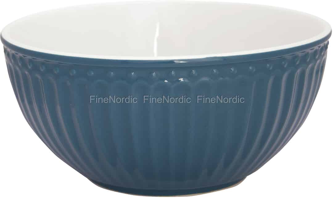 Die Alice Ocean Blue Müslischale ist ein weiteres schönes Stoneware Produkt aus der Alice Everyday-Kollektion von GreenGate. Die musterlose Schale kann gut mit gemustertem Porzellan aus anderen GreenGate-Serien kombiniert werden und verleiht dem Tisch noch mehr Interesse. Wenn Sie einen wirklich farbenfrohen Frühstückstisch decken möchten, dann mischen Sie einfach die ozeanblaue Schale mit ein paar verschiedenfarbigen Alice Stoneware Müslischüsseln. Diese Schale, mit ihrer hübschen blauen Farbe, sieht auch in einem im maritimen Stil eingerichteten Haus einfach toll aus.