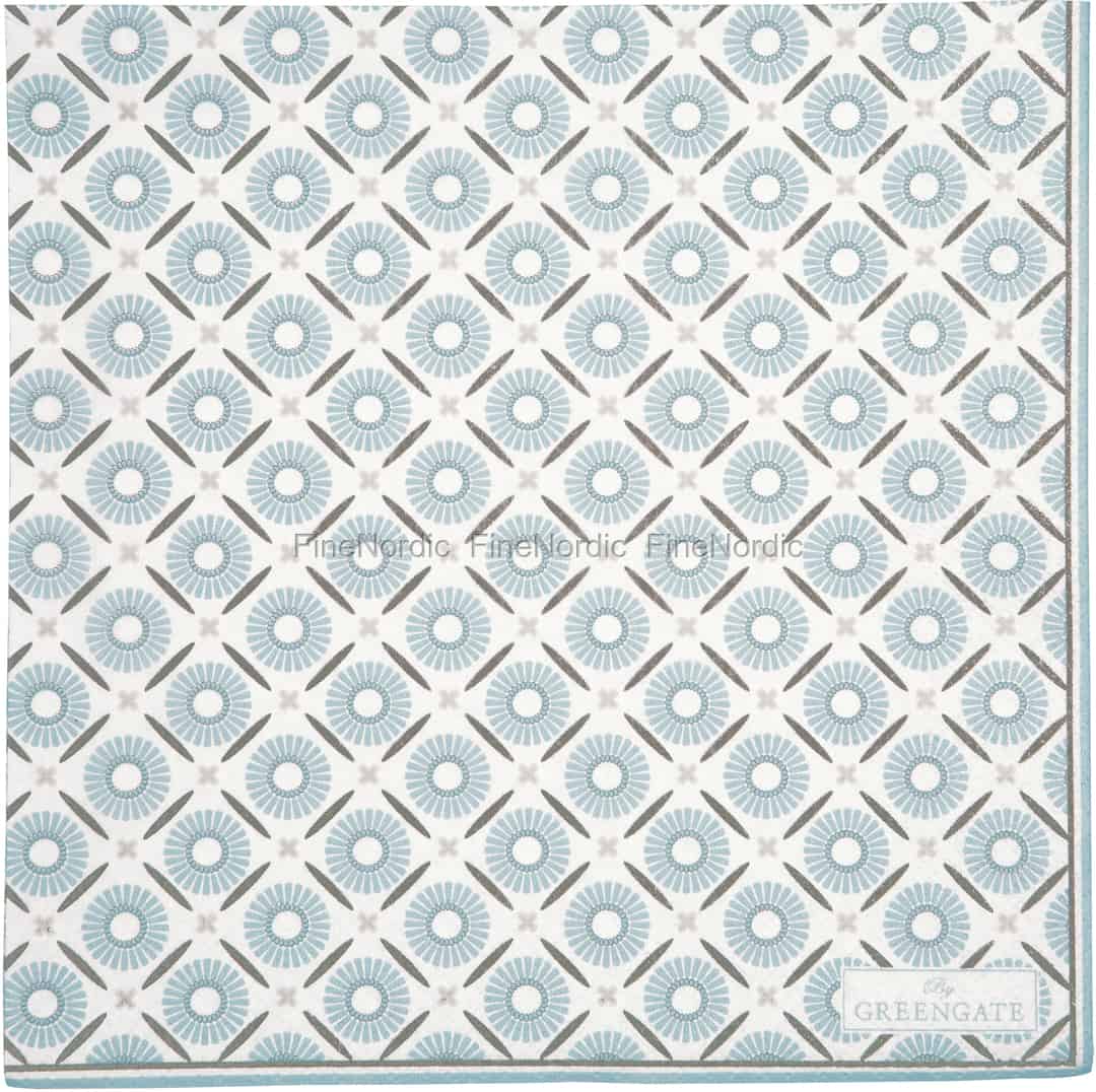Servietten sind ebenso praktisches wie auch dekoratives Tischzubehör. Sie verleihen einem Tisch Farbe und Textur und es ist gut sie in Reichweite zu haben, falls Sie ein wenig gekleckert haben oder sich den Mund abwischen möchten. Die Alva White Papierservietten von GreenGate zeichnen sich durch ihre schöne Farbkombinationen und ihr hübsches Design aus. Die hellblauen Servietten können in Kombination mit den Alva White Geschirrteilen sowie auch mit anderen GreenGate Serien verwendet werden. Sie kommen in einer Packung mit 20 Stück und eignen sich auch sehr gut als kleines Geschenk für den Gastgeber oder als Überraschungsgeschenk für einen geliebten Menschen.