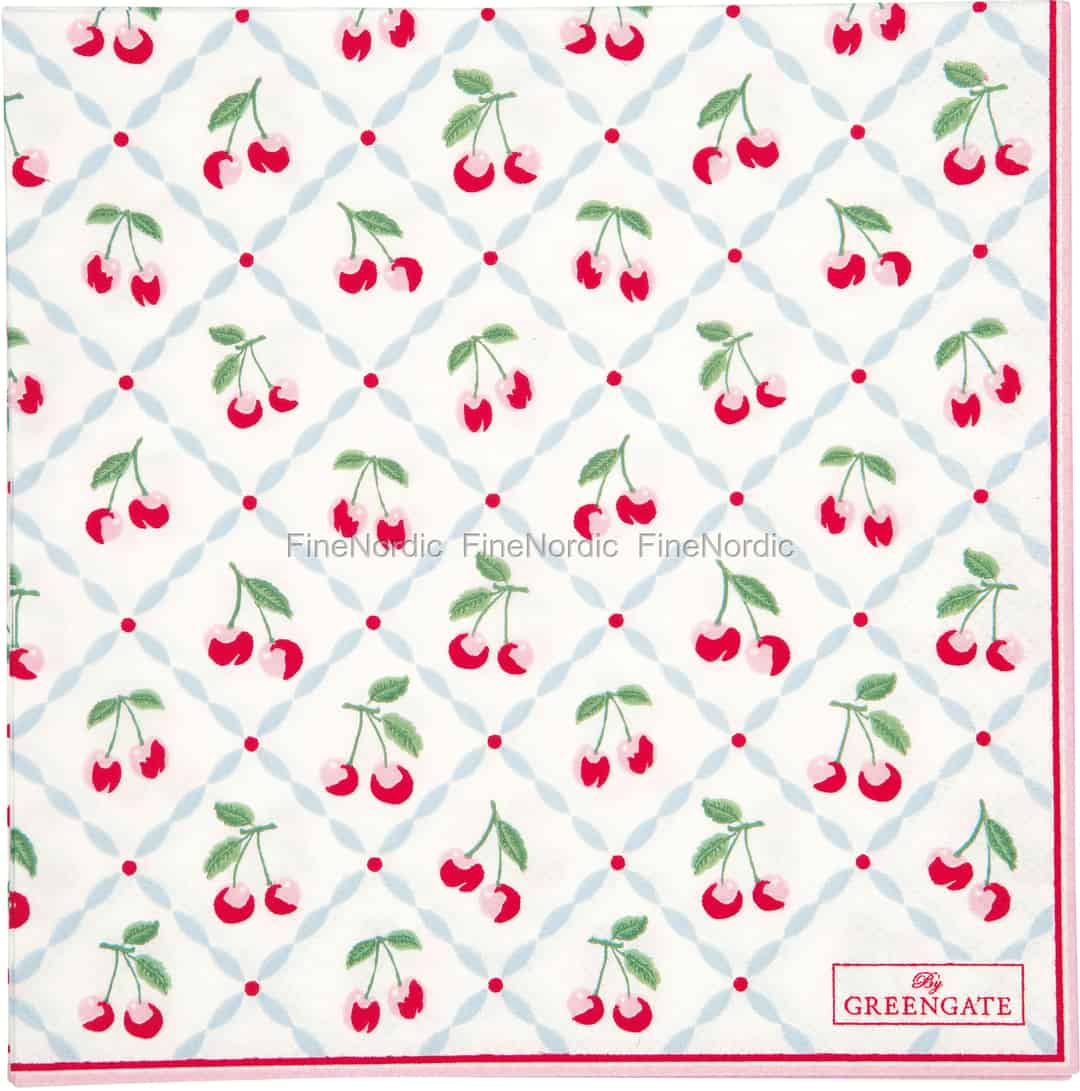 Eine Papierserviette dient nicht nur als ein rechteckiges Tuch zum Mundabwischen, sondern auch also eine schöne Tischdekoration. Wie zum Beispiel diese Cherie White Serviette von GreenGate. Die große Papierserviette ist im 20er Set erhältlich und ihr dekoratives Kirschdesign verleiht dem Tisch Farbe und ein sommerliches Gefühl. Verwenden Sie sie bei der nächsten Sommerparty im Garten oder bei einer Geburtstagsfeier auf der Terrasse. Sie können das Set aber auch einfach in einen hübschen Serviettenhalter auf Ihrem Esstisch legen, sodass Sie immer Servietten griffbereit haben, wenn eine benötigt wird. Sie können sie gut mit dem Cherry White Geschirr von GreenGate kombinieren oder sie neben monochromen Geschirrteilen ganz besonders hervorstechen lassen, je nachdem, was Sie bevorzugen.
