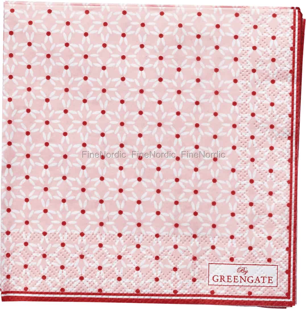 Der Tisch ist mit dem feinsten Geschirr gedeckt, aber Sie haben trotzdem das Gefühl, dass noch etwas fehlt? Dann lassen Sie mal diese schönen Juno Pale Pink Papierservietten dem Tisch den letzten Schliff verleihen. Diese kleinen Servietten werden mit einem schönen, sich wiederholenden Blumenmuster auf einem hellrosa Hintergrund verziert. Sie kommen in einer Packung mit 20 Stück und können bei Brunchs, Cocktailpartys oder wann auch immer Sie meinen, dass diese kleinen Servietten nützlich sein könnten, verwendet werden. Wir bieten eine großzügige Auswahl an kleinen und großen GreenGate-Papierservietten an. Sie können diese alle in unserem Webshop entdecken.